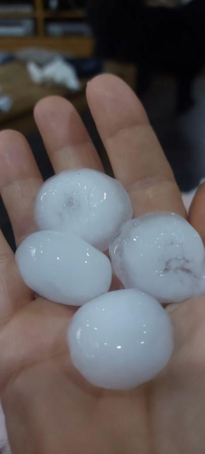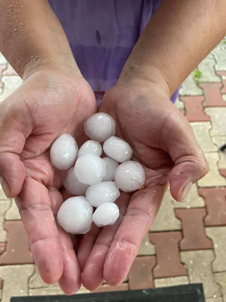 Posamezne kraje je prizadela tudi toča, ki je glede na objave na družbenih omrežjih klestila vse od Majšperka do okolice Ptuja. O debelejši toči poročajo tudi z območja Vuzenice, Mute in Radelj ob Dravi. Približno deset minut je toča tolkla tudi na Brežiškem, kjer so sunki vetra lomili drevesa, iz kanalizacijskih jaškov je bruhala voda. Po besedah prebivalcev se je sredi neurja nad mestom zarisala tudi dvojna mavrica.