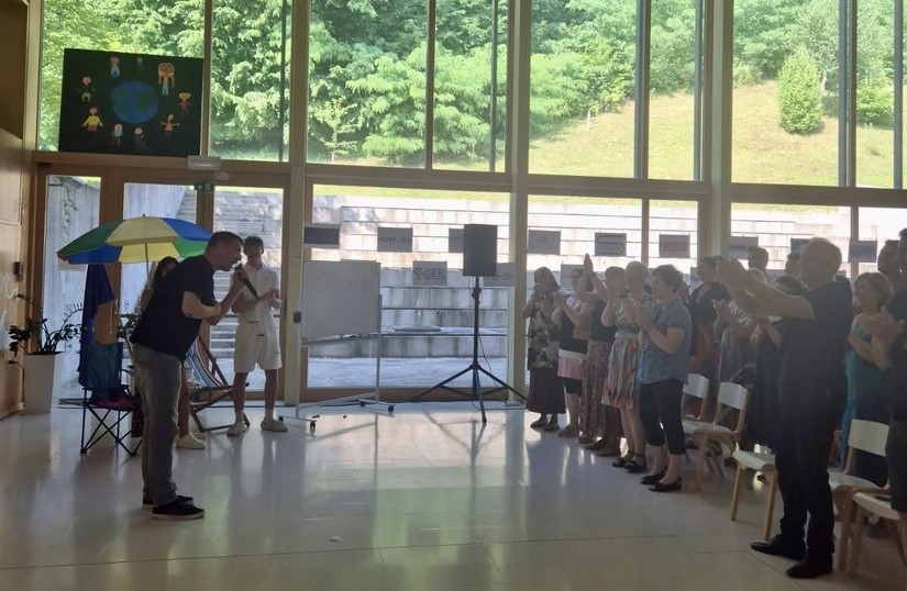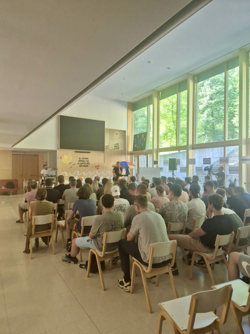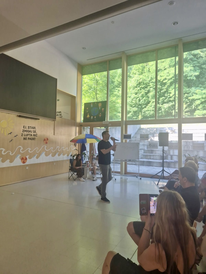 V torek, 24. junija 2025, je Srednja šola Ravne z navdihujočo prireditvijo obeležila zaključek šolskega leta. Prijetno in sproščeno vzdušje v dvorani je dodatno popestril poseben gost — priznani slovenski raper in motivator Trkaj.