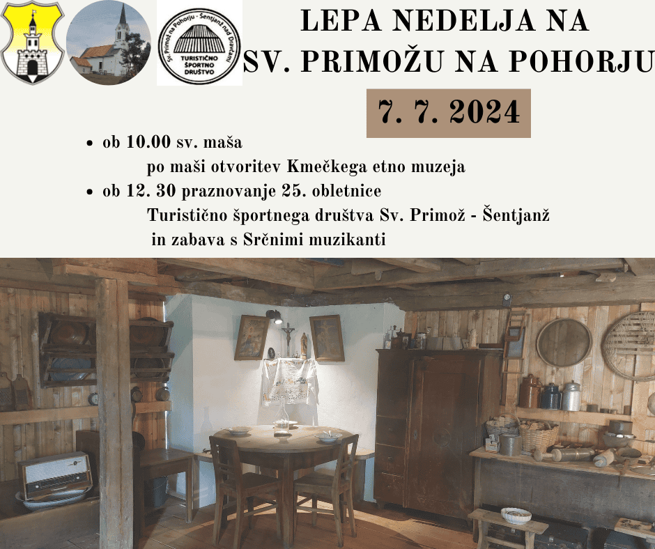 To nedeljo, 7. julija 2024, od 10. ure dalje, bo na Sv. Primožu na Pohorju potekala "lepa nedelja". Ob 10. uri boste priča sv. maši.