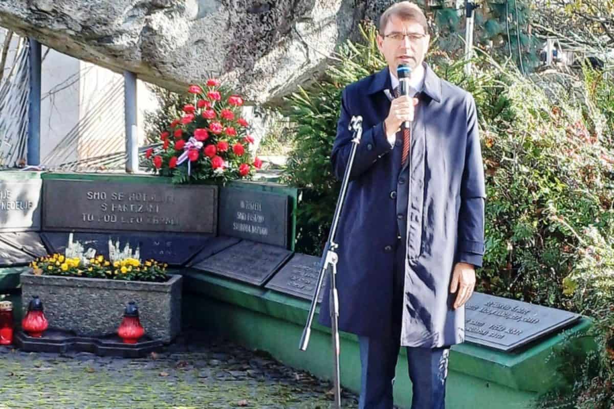 Venec so k mogočnemu spomeniku v spomin vsem padlim borcem in žrtvam fašističnega nasilja položili poslanec DZ RS Jani Prednik, župan Občine Ravne na Koroškem dr. Tomaž Rožen in predsednik ZB Kotlje Janez Krebs.