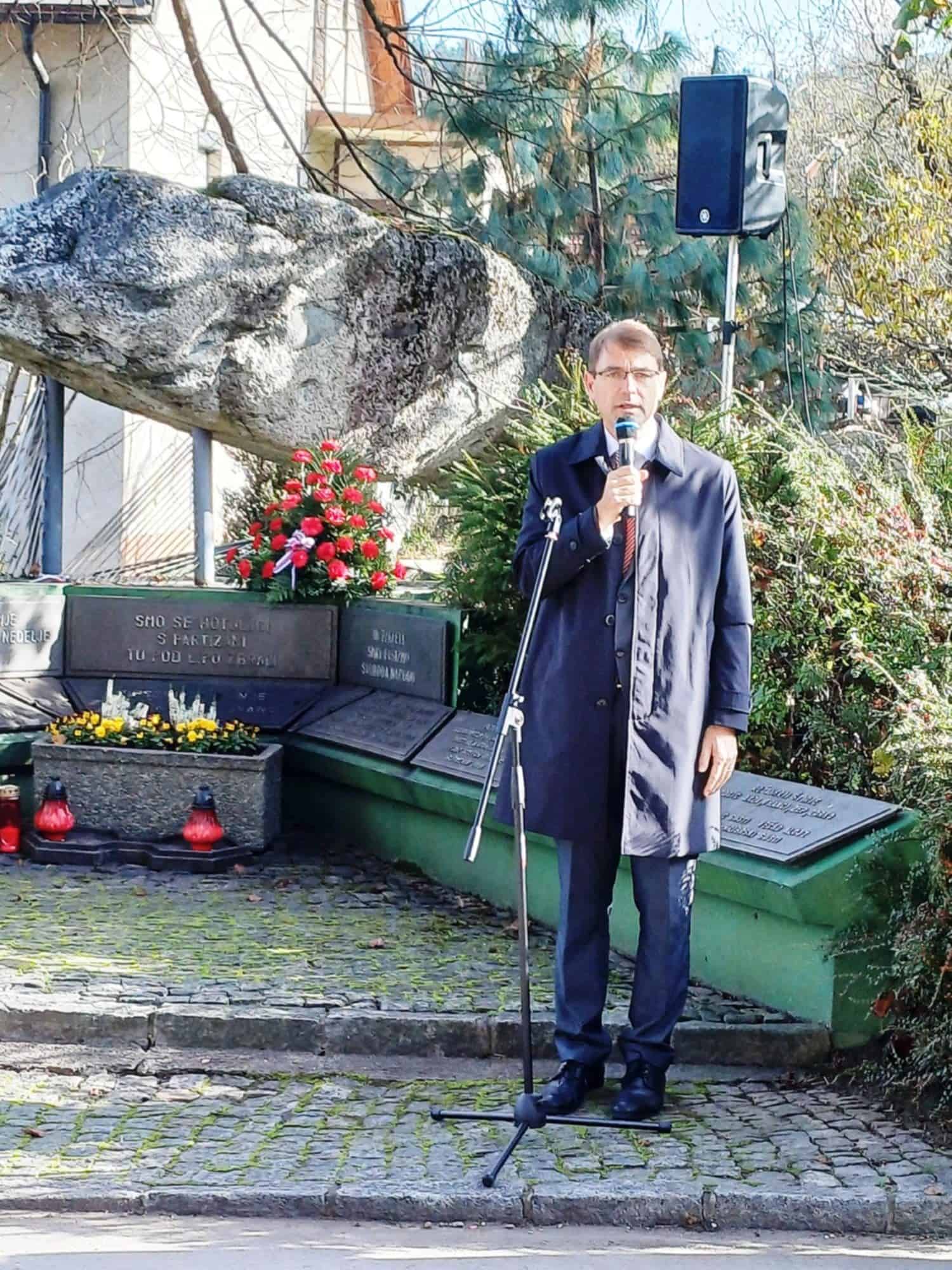 Venec so k mogočnemu spomeniku v spomin vsem padlim borcem in žrtvam fašističnega nasilja položili poslanec DZ RS Jani Prednik, župan Občine Ravne na Koroškem dr. Tomaž Rožen in predsednik ZB Kotlje Janez Krebs.