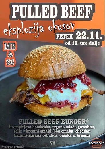 Na »Eksploziji okusov v Slovenj Gradcu«, kot so organizatorji poimenovali dogodek, na katerem ne smete manjkati, bodo pripravili odličen burger, Pulled beef burger. Prvovrstna trgana mlada govedina v sveži krompirjevi bombetki s sezamom, zelje v kremni omaki, bbq omaka, cheddar, karamelizirana čebulica, omaka iz brusnic, je kombinacija sestavin, ki se jo splača poskusiti.