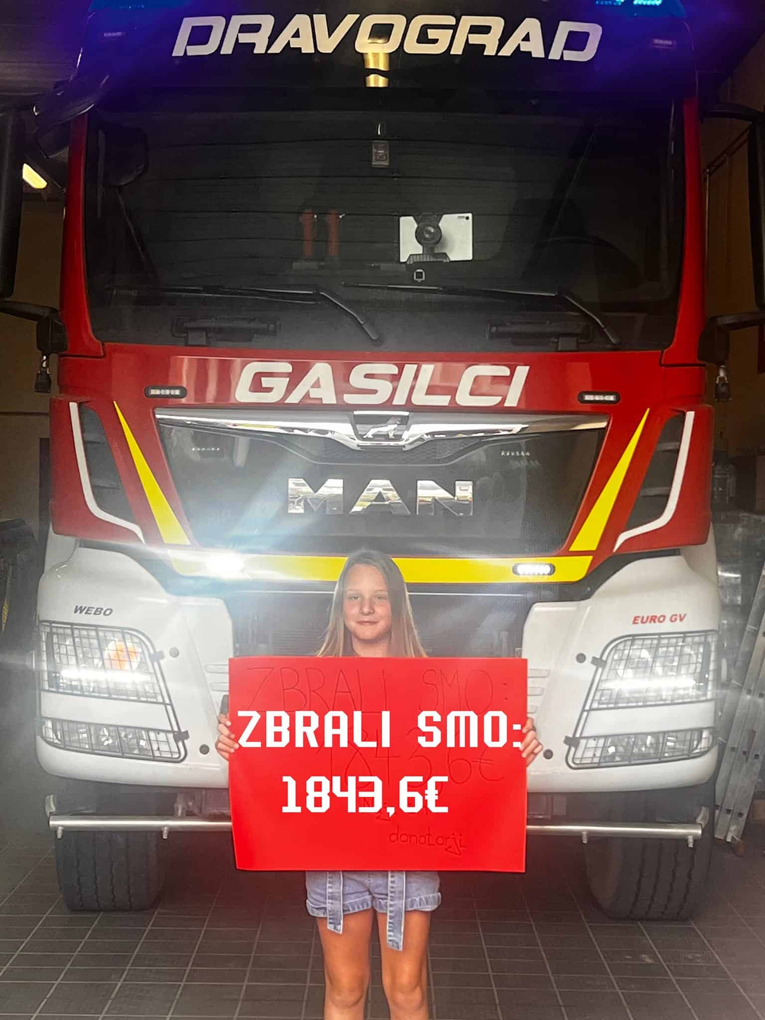Danes je predala donacijo gasilcem PGD Dravograd, kjer je skupaj s prodajo zapestnic in z vsemi donatorji pomagala društvo. S prodajo zapestnic je včeraj in danes zbrala 1843,60 eur.