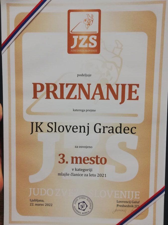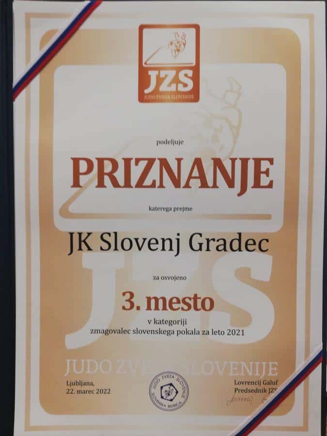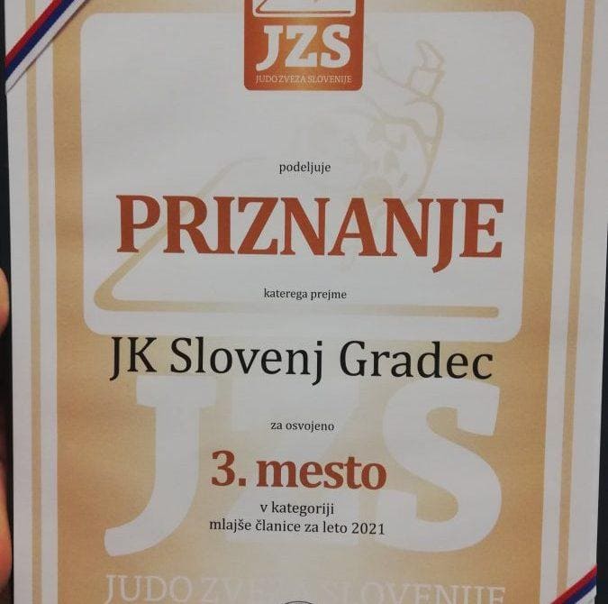 Judo klub Acron Slovenj Gradec je že tretjič zapored prejel tudi priznanje za tretji najuspešnejši klub v Sloveniji. Na tretjem mestu pa so Slovenjgradčani bili tudi v skupnem seštevku točk vseh moških starostnih kategorij.