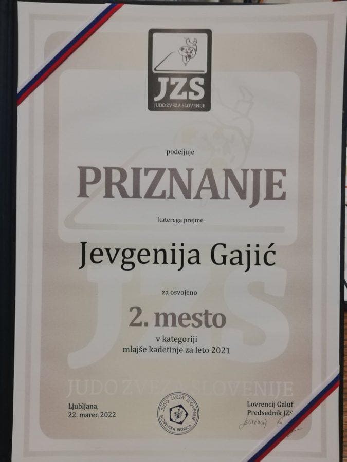 V posamični konkurenci so priznanja dobili: Nace Herkovič za osvojeno 2. mesto v starostni kategoriji mlajših članov, Jevgenija Gajić za osvojeno 2. mesto v konkurenci mlajših kadetinj ter Nik Pavlič za osvojeno 3. mesto v konkurenci mlajših kadetov.