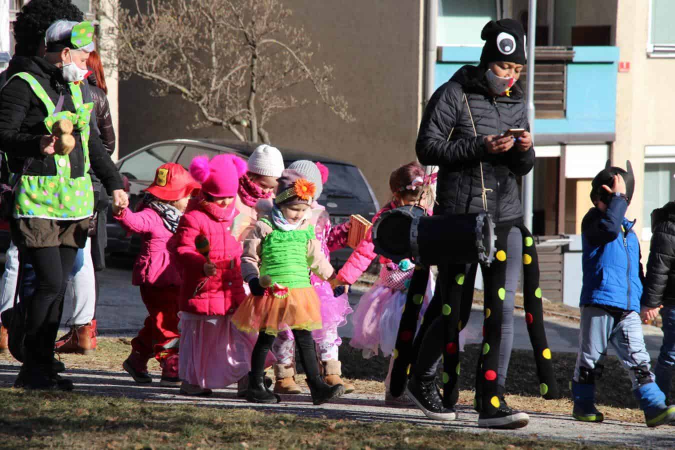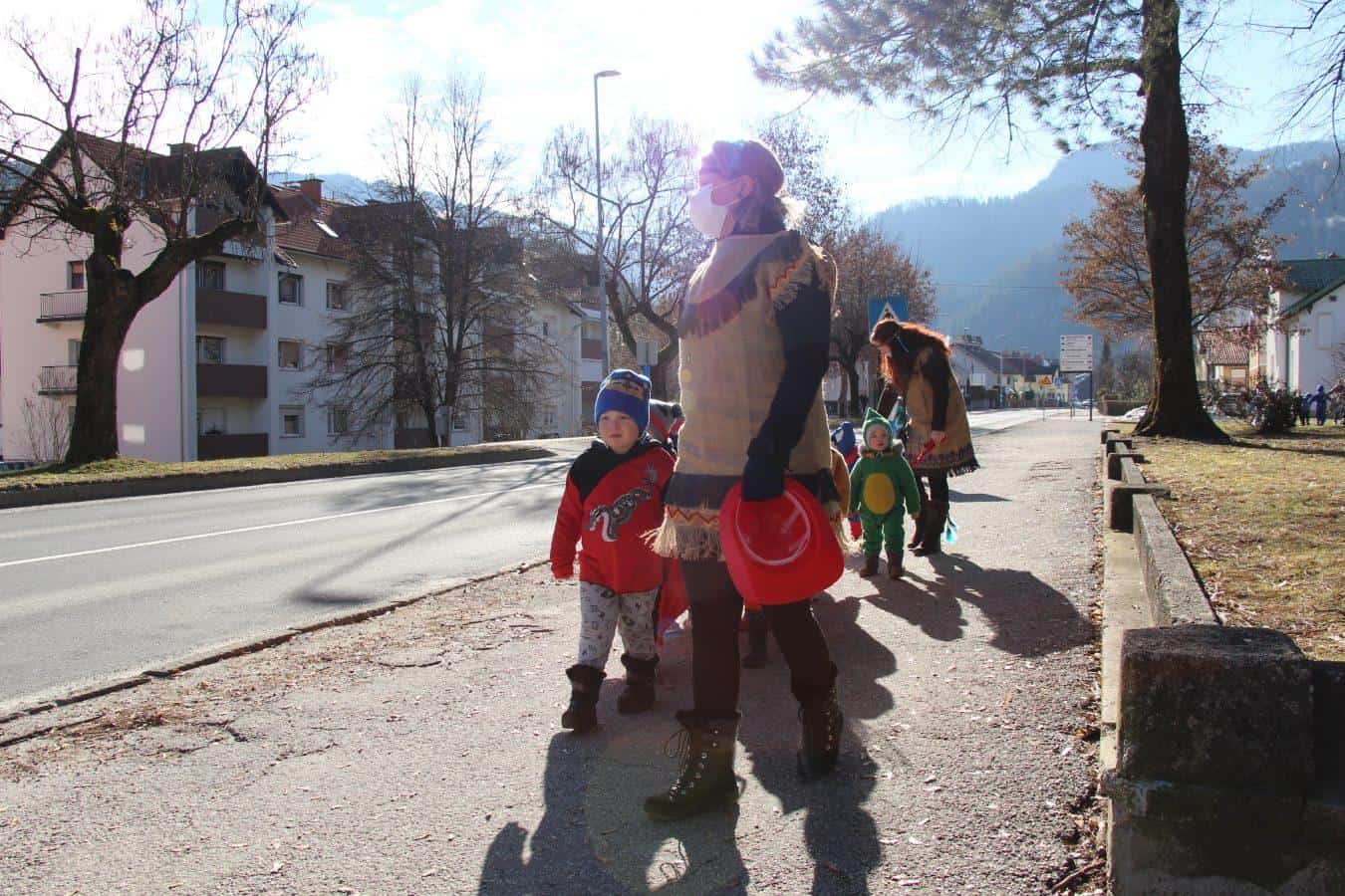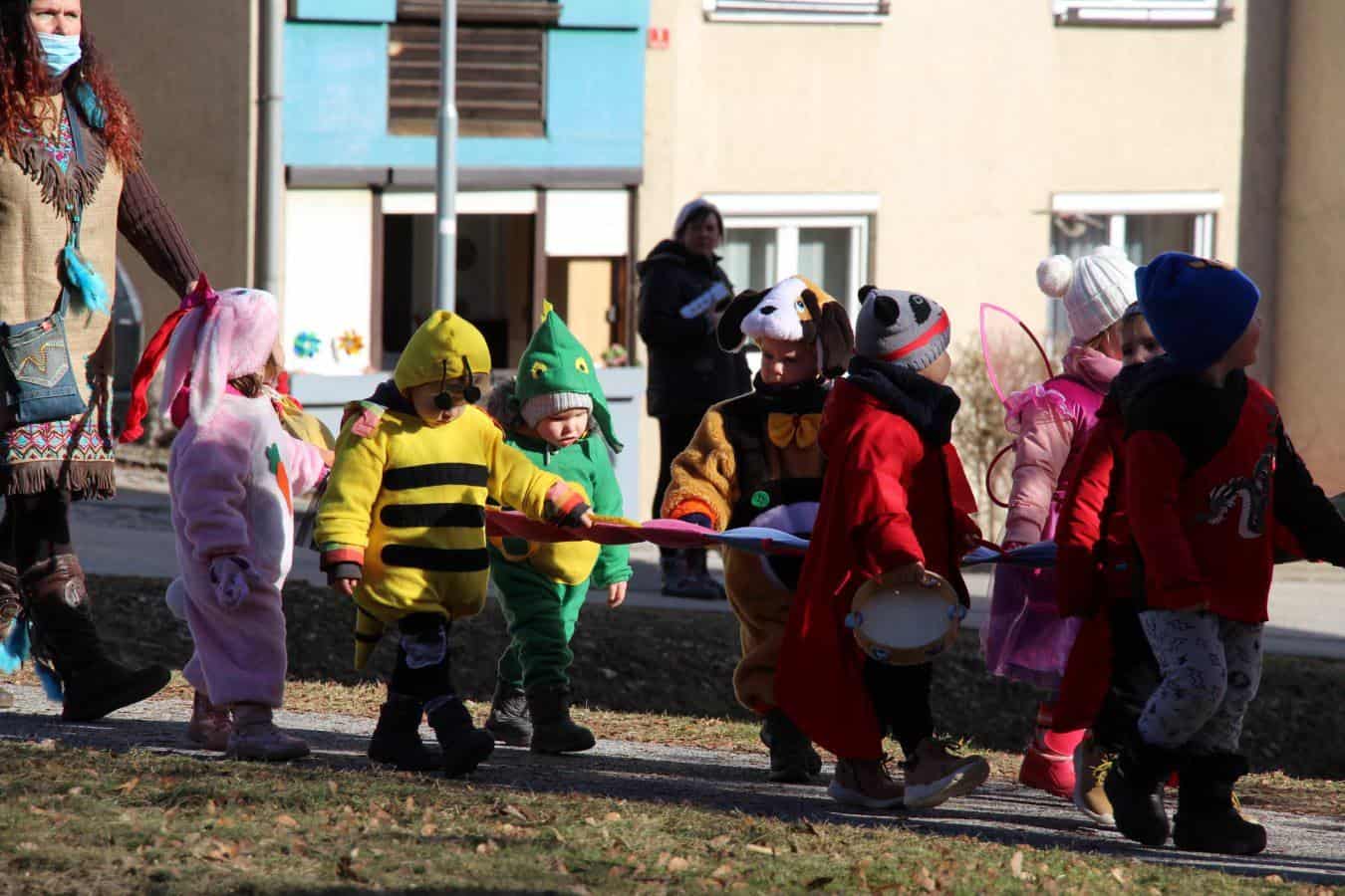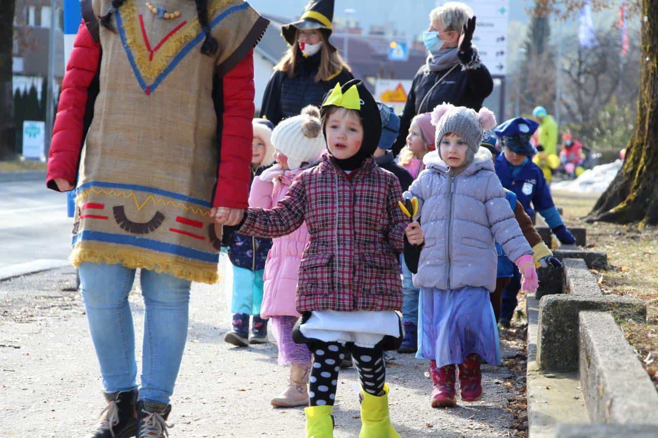 Po pustnem plesu pa so se maškare v pisanih “mehurčkih” podale še na sprehod po Mežici. Mimoidoče so razveseljevali s pustnimi pesmicami in klicali pomlad, v upanju, da z zimo odženejo tudi koronavirus,