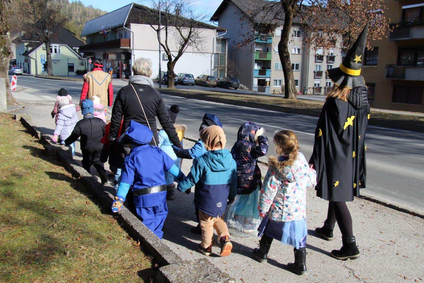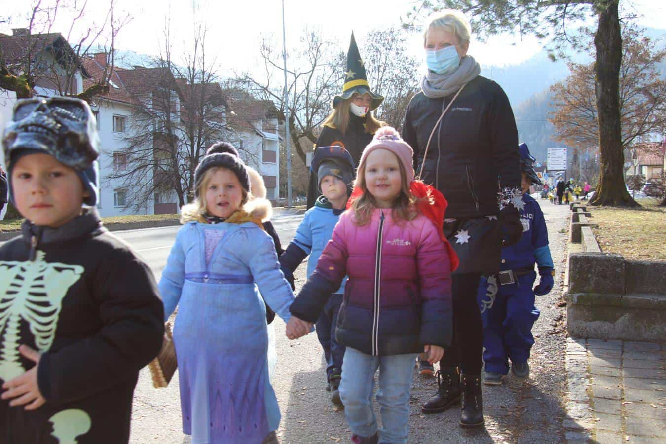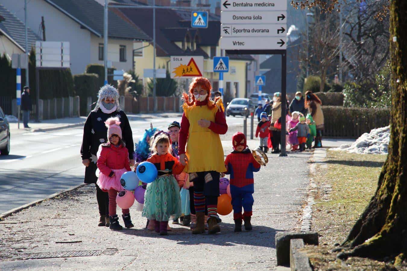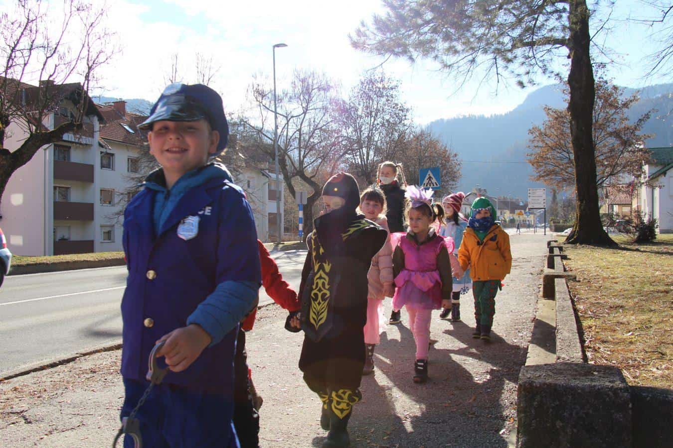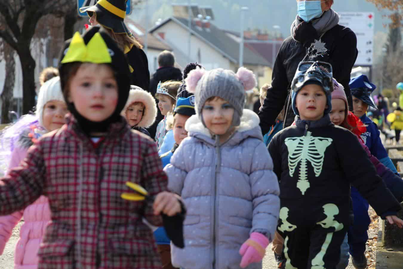 Po pustnem plesu pa so se maškare v pisanih “mehurčkih” podale še na sprehod po Mežici. Mimoidoče so razveseljevali s pustnimi pesmicami in klicali pomlad, v upanju, da z zimo odženejo tudi koronavirus,