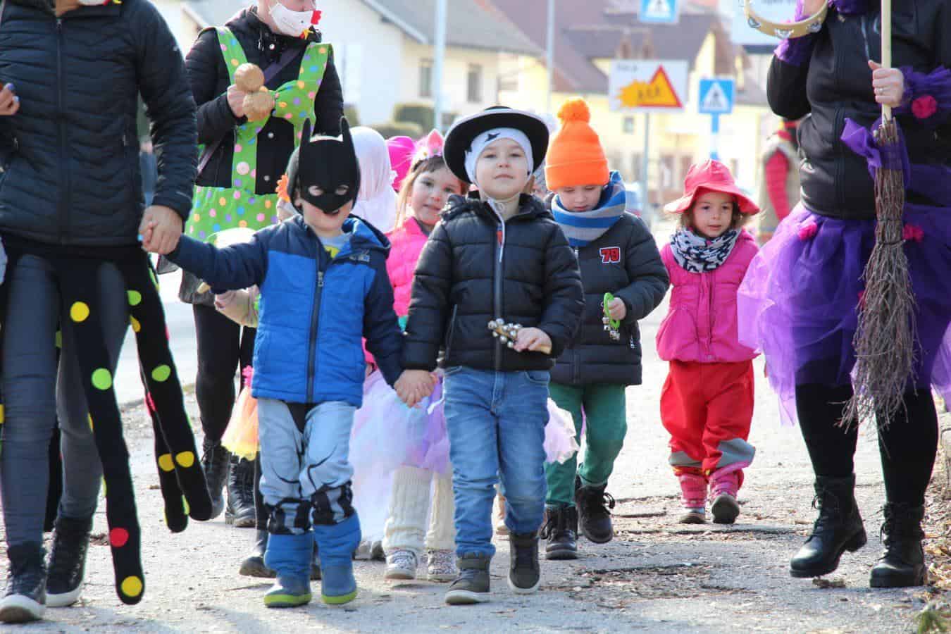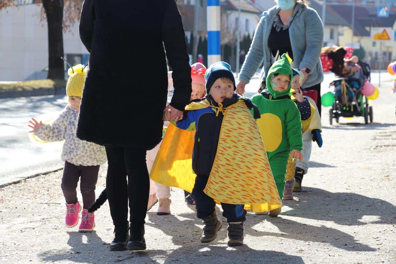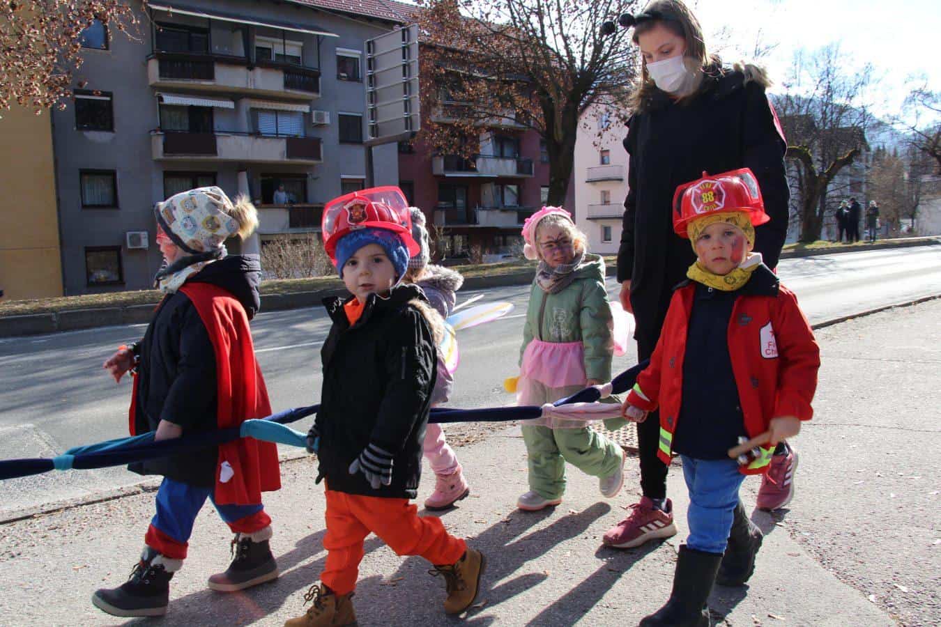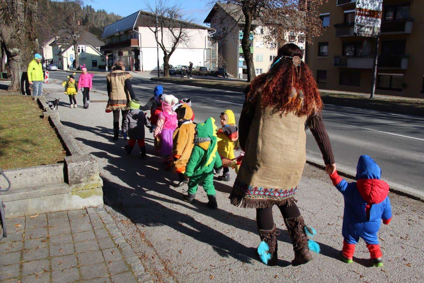 Po pustnem plesu pa so se maškare v pisanih “mehurčkih” podale še na sprehod po Mežici. Mimoidoče so razveseljevali s pustnimi pesmicami in klicali pomlad, v upanju, da z zimo odženejo tudi koronavirus,