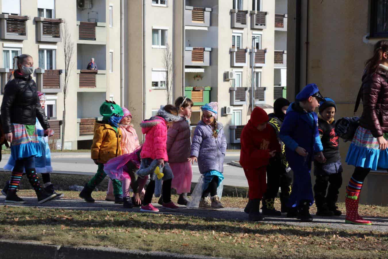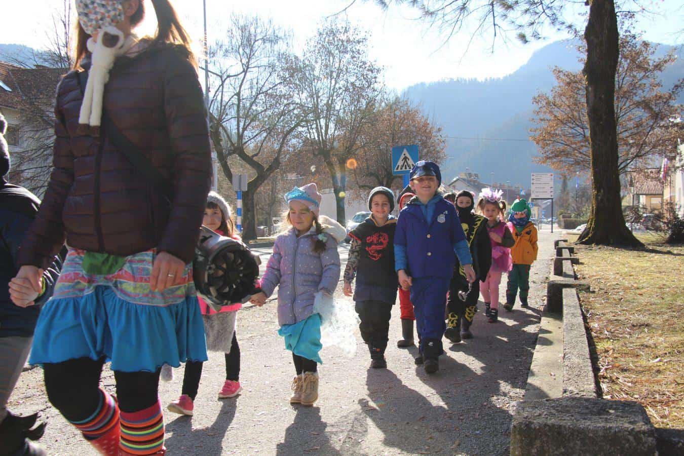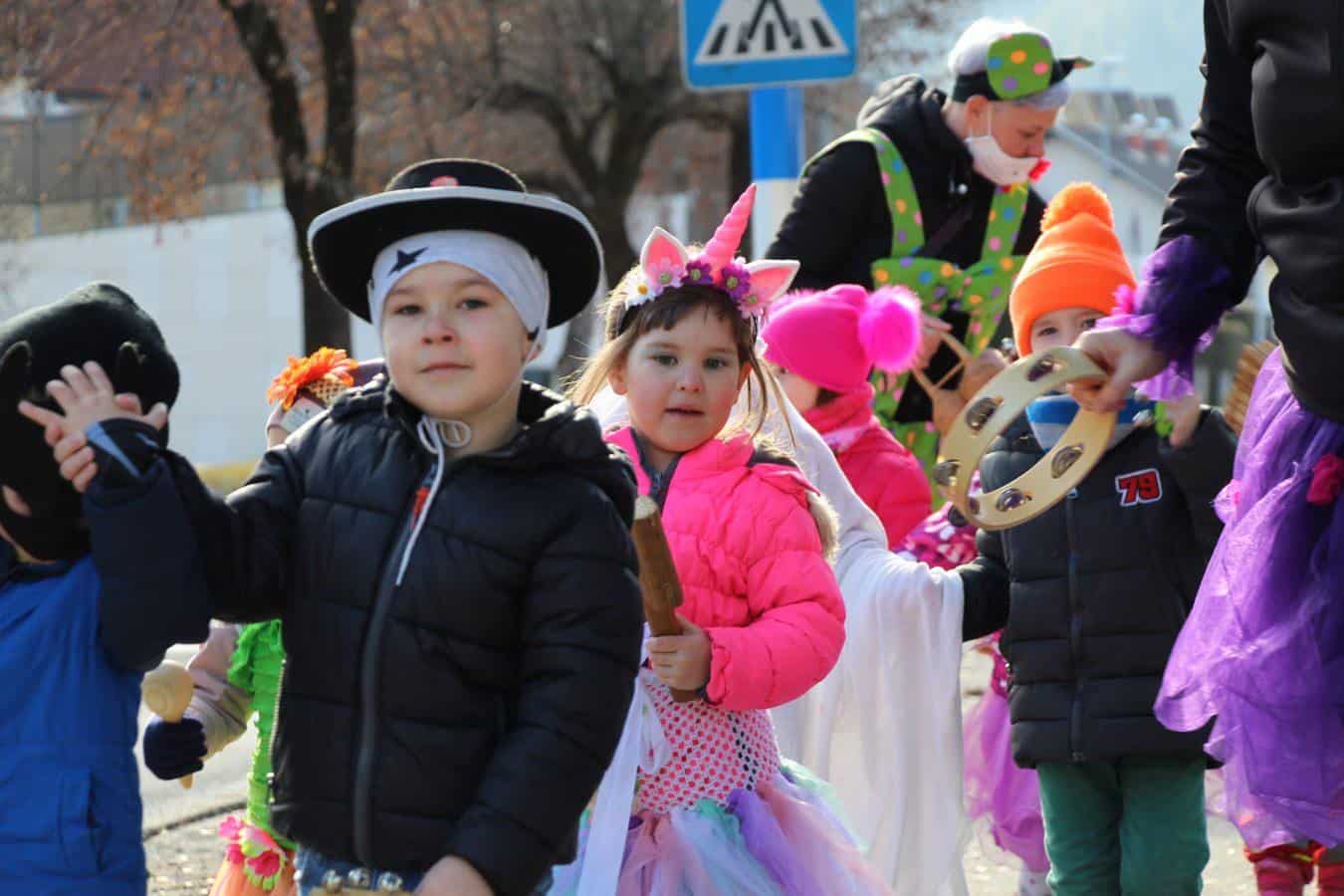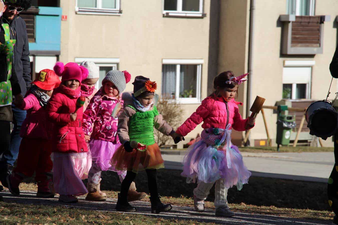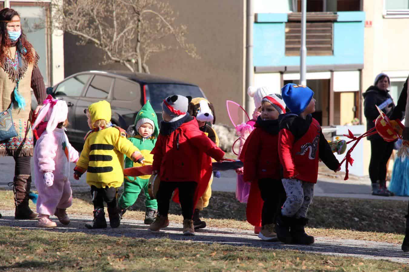 Po pustnem plesu pa so se maškare v pisanih “mehurčkih” podale še na sprehod po Mežici. Mimoidoče so razveseljevali s pustnimi pesmicami in klicali pomlad, v upanju, da z zimo odženejo tudi koronavirus,