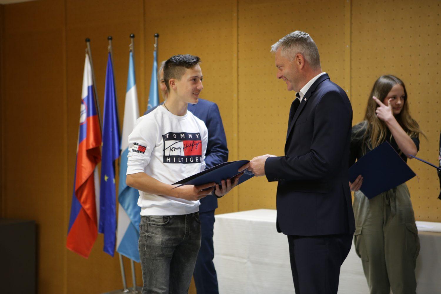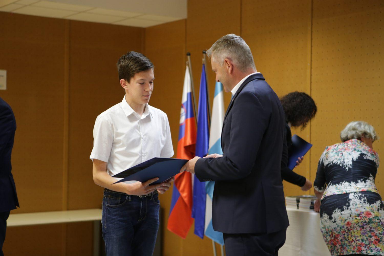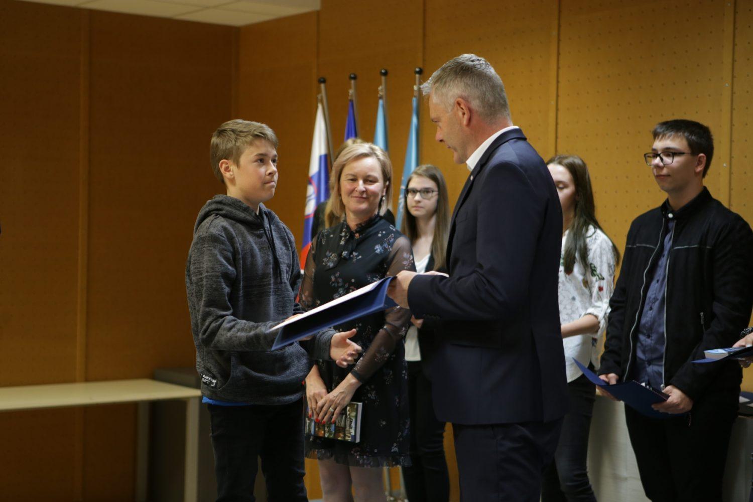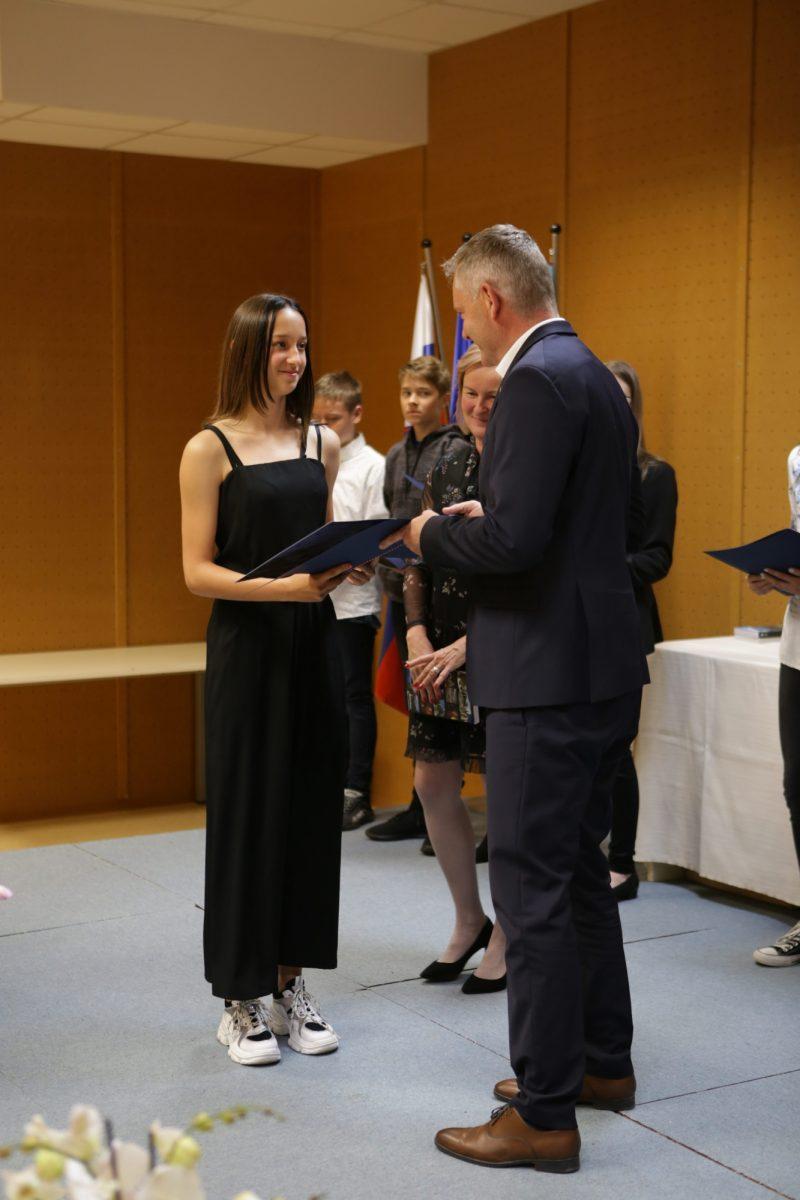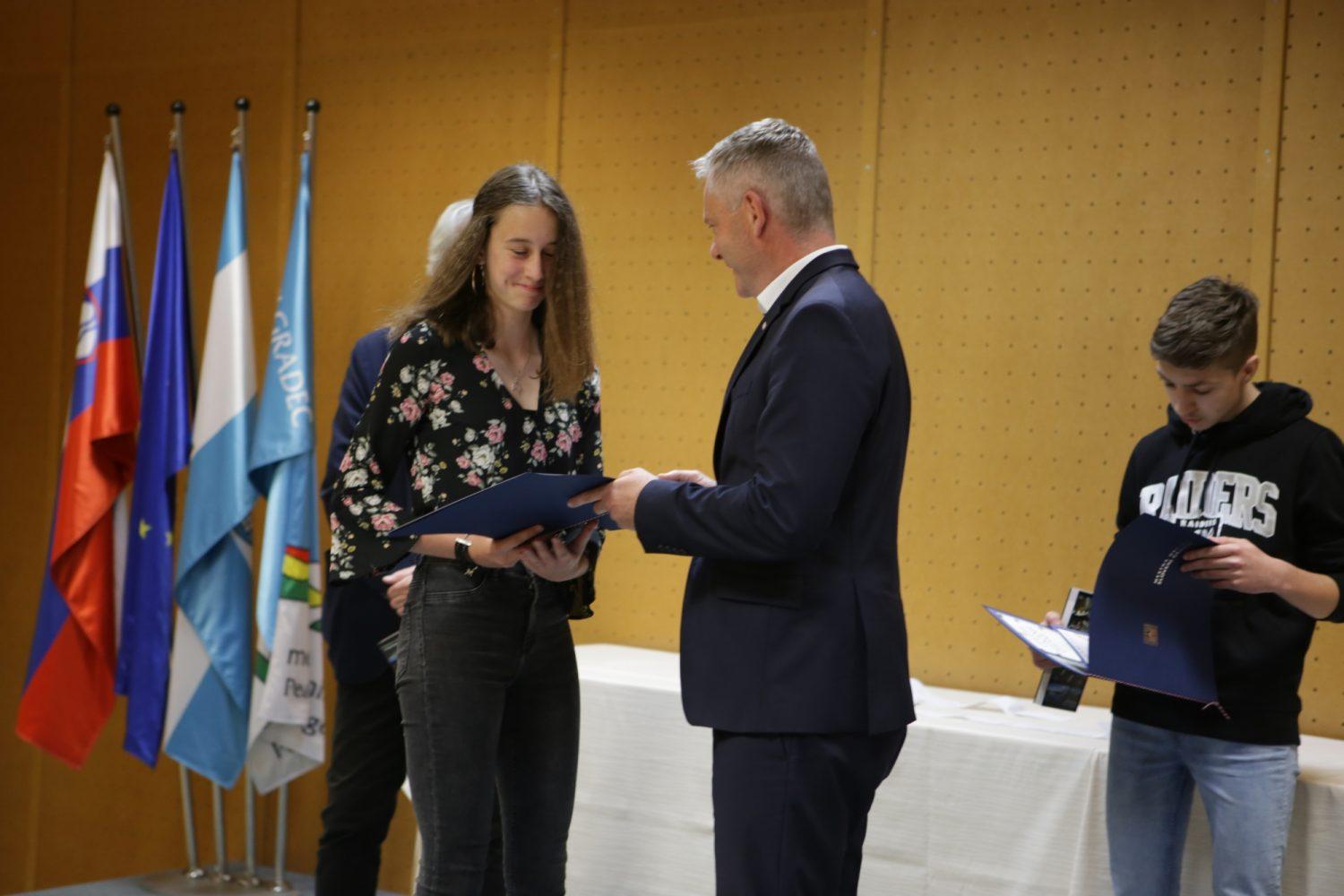 Župan Tilen Klugler je danes v Mladinskem kulturnem centru na Ozarah podelil priznanja. Priznanja je prejelo kar 37 učenk in učencev.