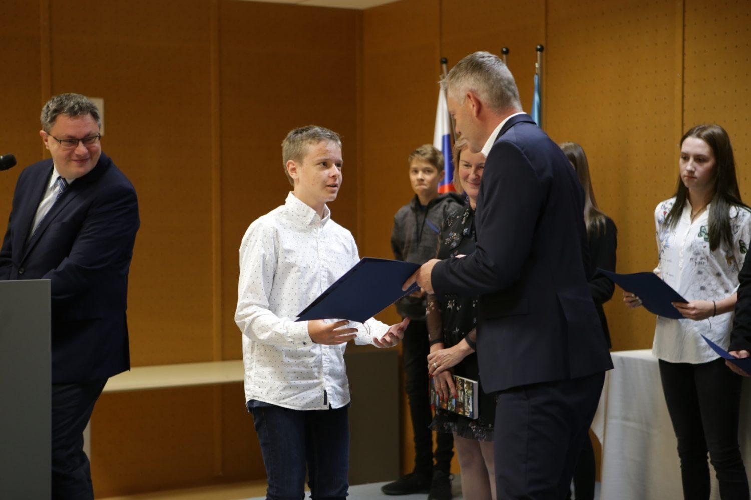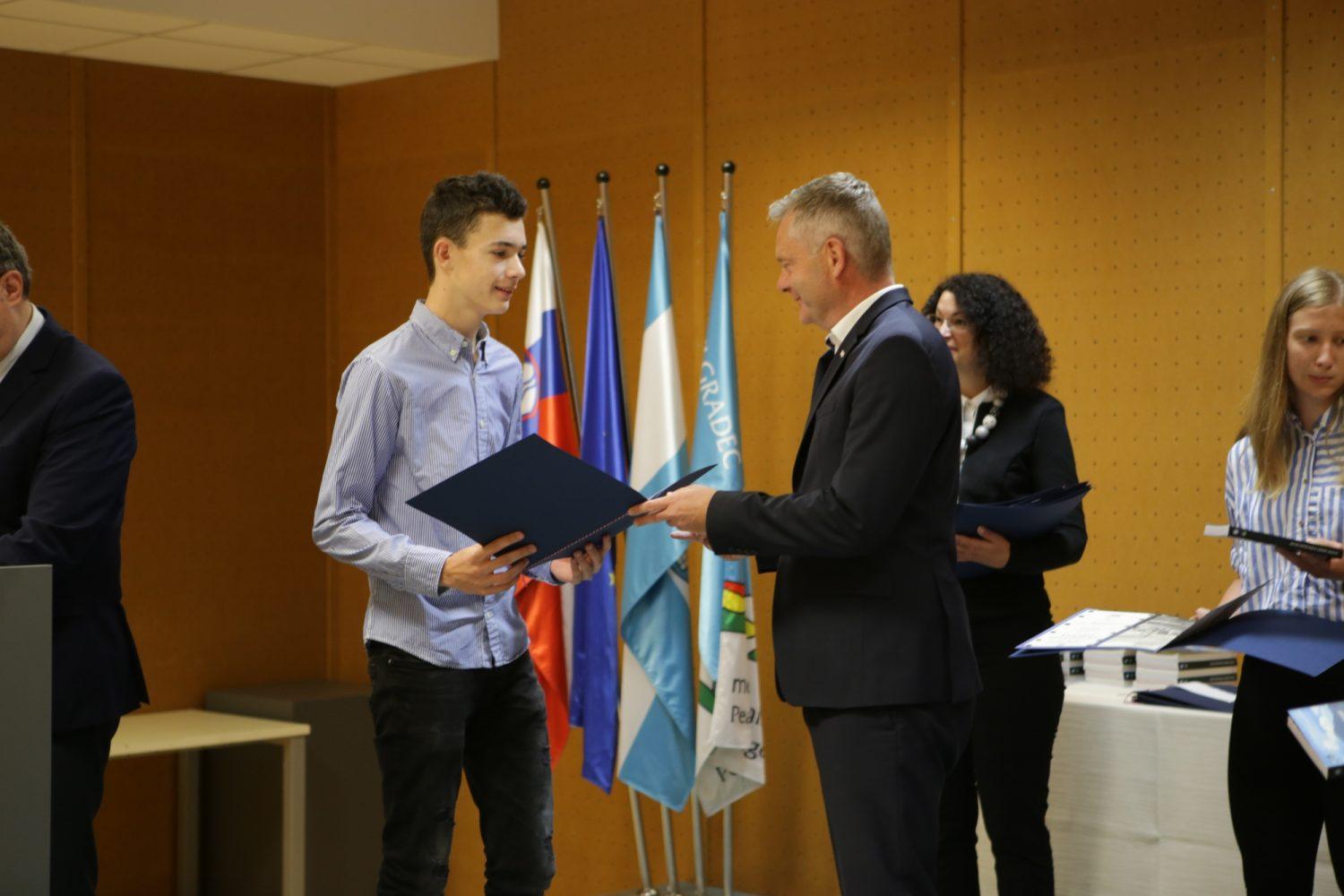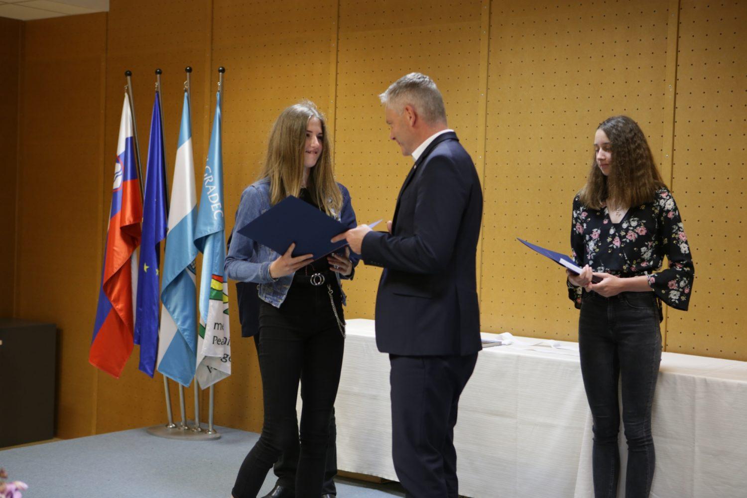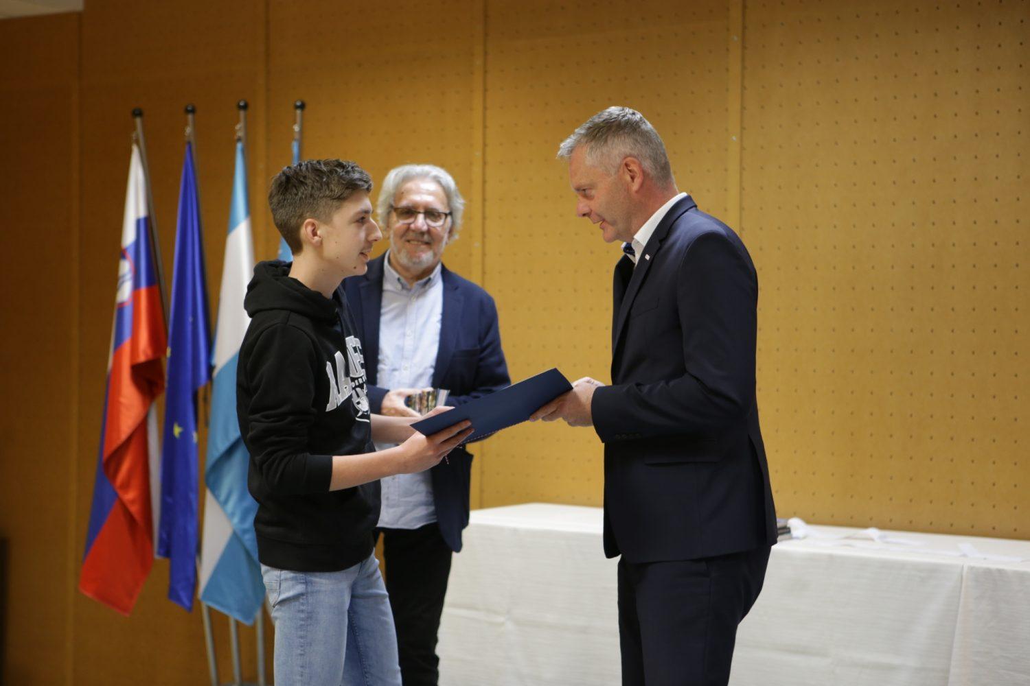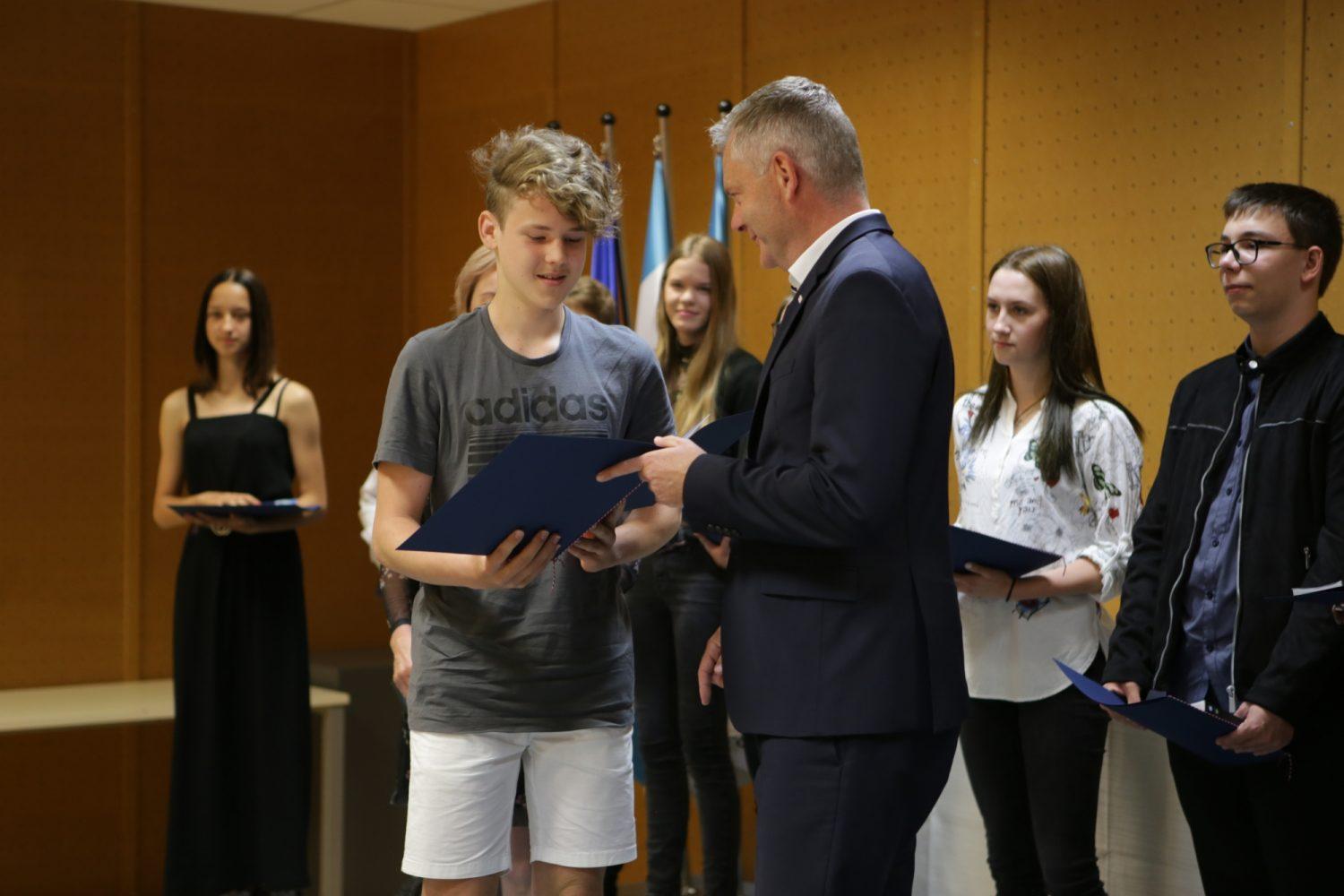 Župan Tilen Klugler je danes v Mladinskem kulturnem centru na Ozarah podelil priznanja. Priznanja je prejelo kar 37 učenk in učencev.