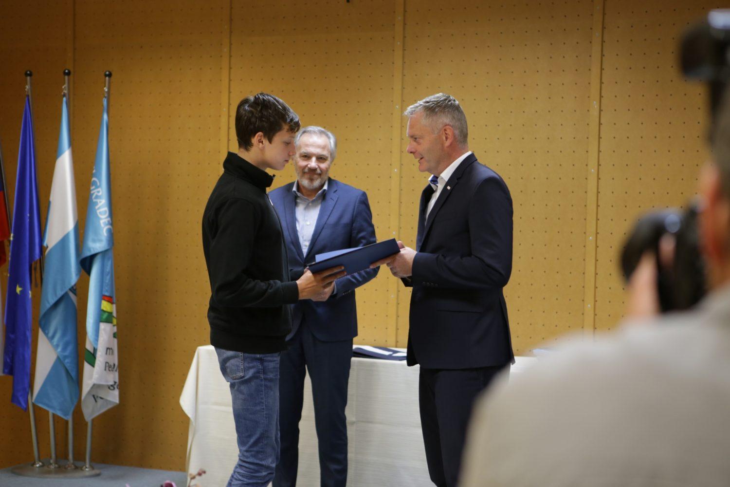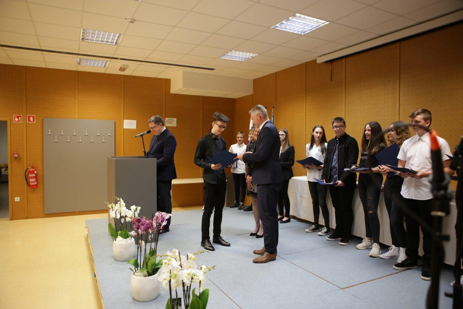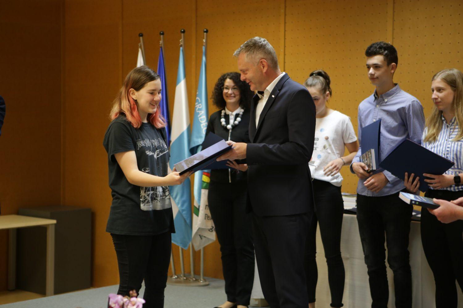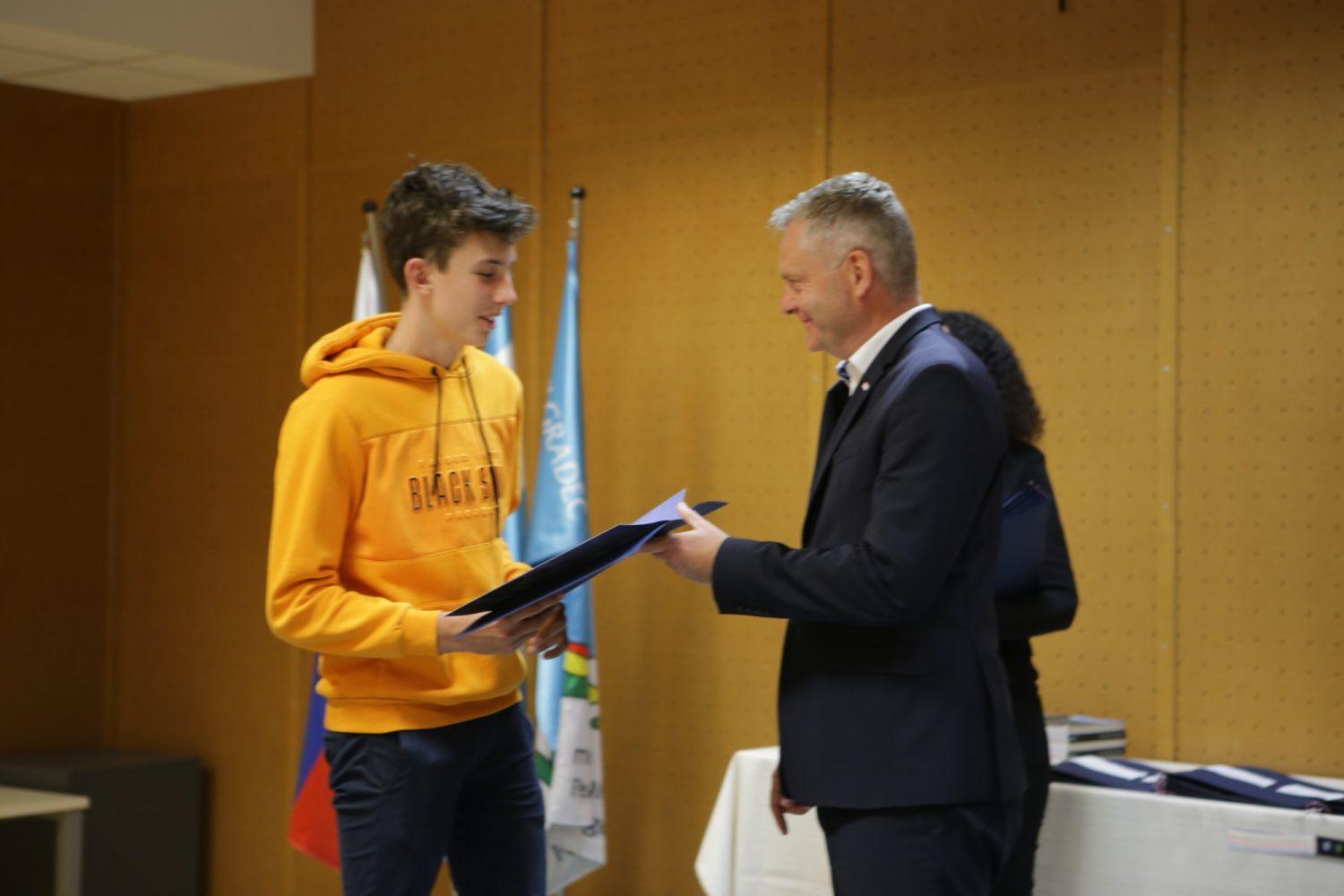 Župan Tilen Klugler je danes v Mladinskem kulturnem centru na Ozarah podelil priznanja. Priznanja je prejelo kar 37 učenk in učencev.