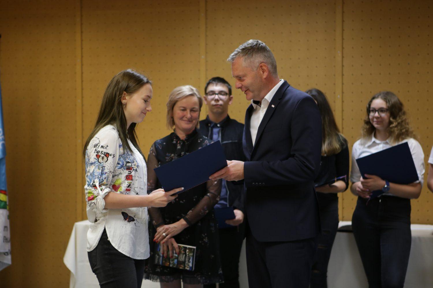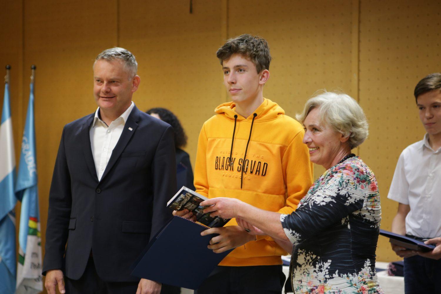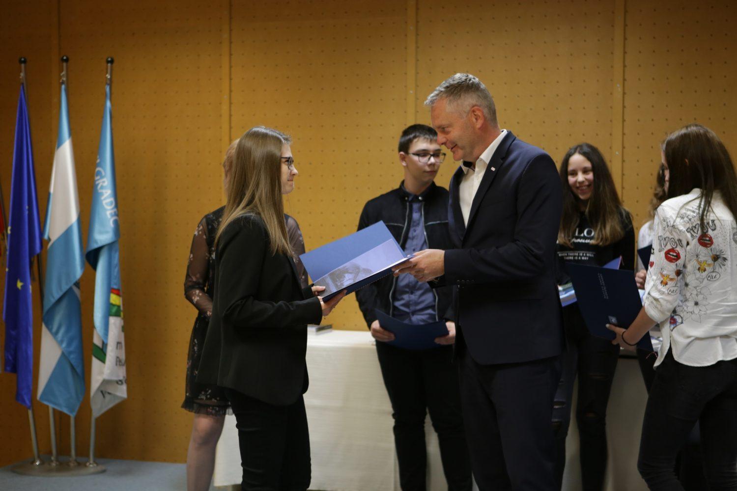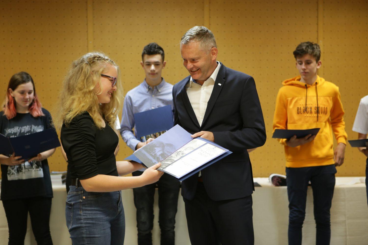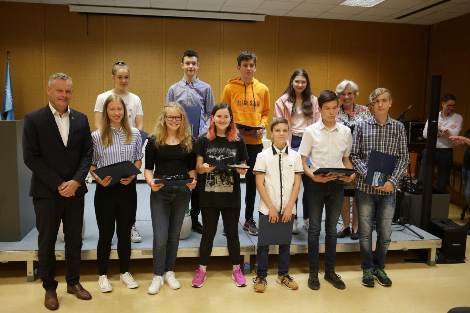 Župan Tilen Klugler je danes v Mladinskem kulturnem centru na Ozarah podelil priznanja. Priznanja je prejelo kar 37 učenk in učencev.