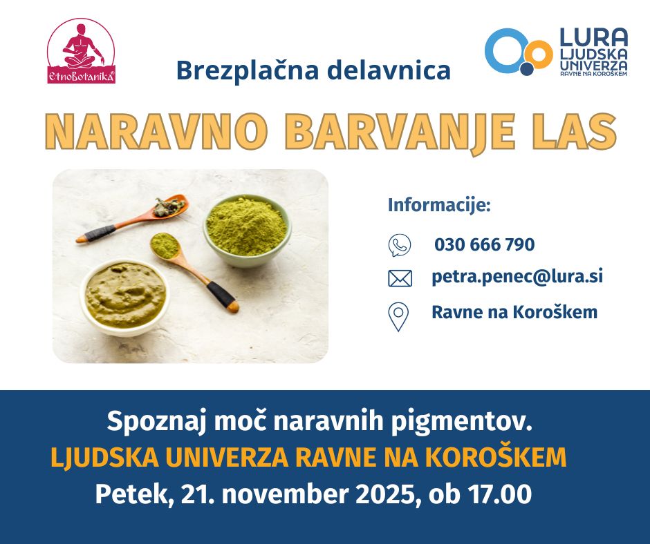Delavnica bo potekala v petek, 21. novembra 2025, ob 17. uri, v učilnici Ljudske univerze Ravne na Koroškem, na naslovu Gačnikova pot 3, Ravne na Koroškem.