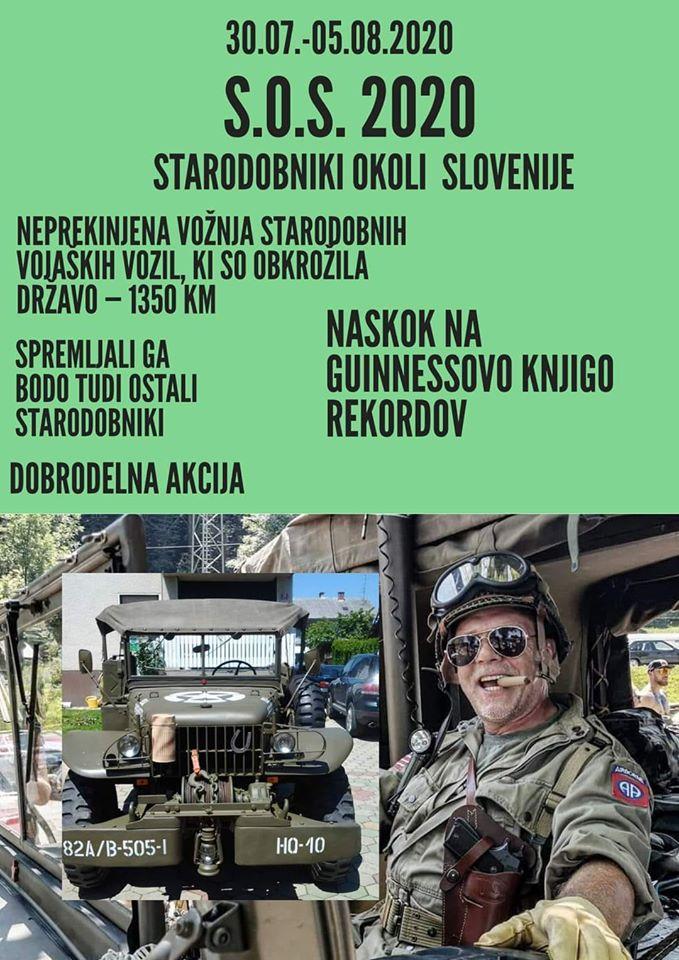 "S svojim starodobnim vojaškim vozilom DODGE WC 52, izdelanim leta 1942, nameravam med 30. julijem in 5. avgustom 2020 obkrožiti državo Slovenijo v nasprotni smeri urinega kazalca. S štartom v mestu Kamnik. Akcijo smo poimenovali S.O.S. (Starodobniki okoli Slovenije). Pri podvigu se mi bojo pridružili kolegi lastniki vojaških in policijskih starodobnih vozil iz cele Slovenije. Za boljšo logistiko in tehnično podporo nas bo spremljala ekipa v kombiju," je pred podvigom povedal Drago Mesić.