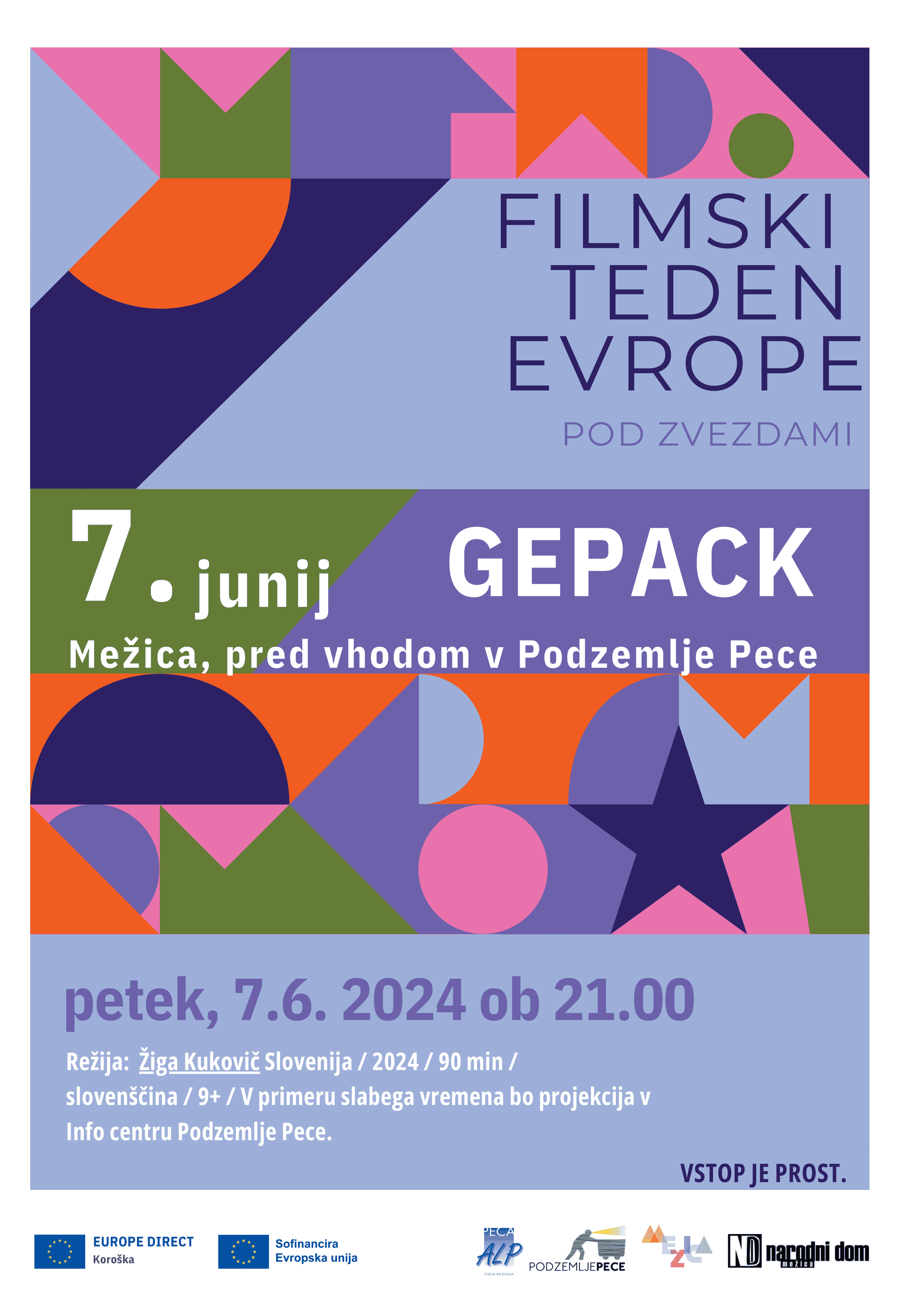 Jutri, v petek, 7. junija 2024, ob 21. uri, bo pred vhodom v Podzemlje Pece, potekal filmski večer pod zvezdami. Ogledali si boste lahko slovenski film Gepack.