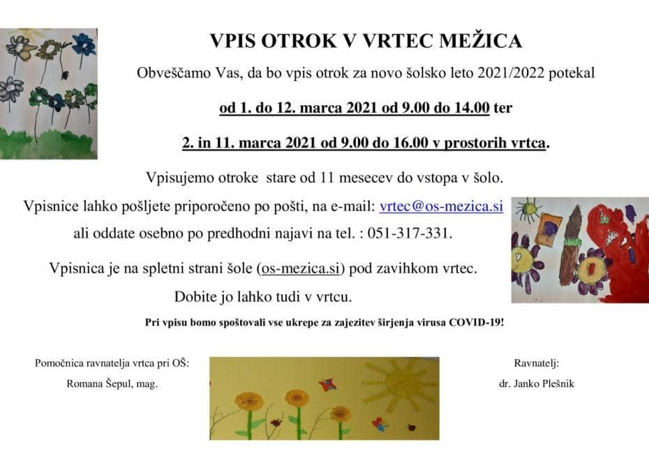 Iz mežiškega vrtca še sporočajo, da bodo pri vpisu spoštovali vse ukrepe za zajezitev širjenja virusa Covid-19.