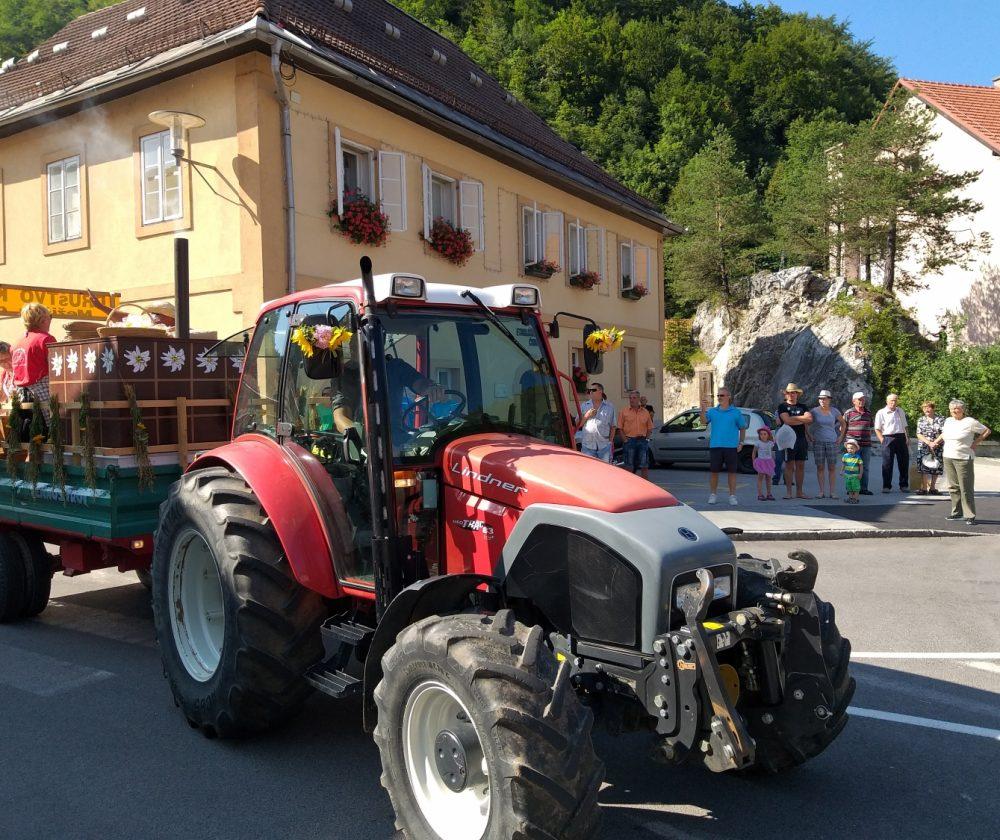 VIDEO: Del kmečke povorke, ki je na pot krenila s Pristave, iz pred domačije Pongračič, mimo centra do kulturnega doma, kjer je sledila predstavitev vozov oziroma običajev, ki so jih pripravili udeleženci povorke.