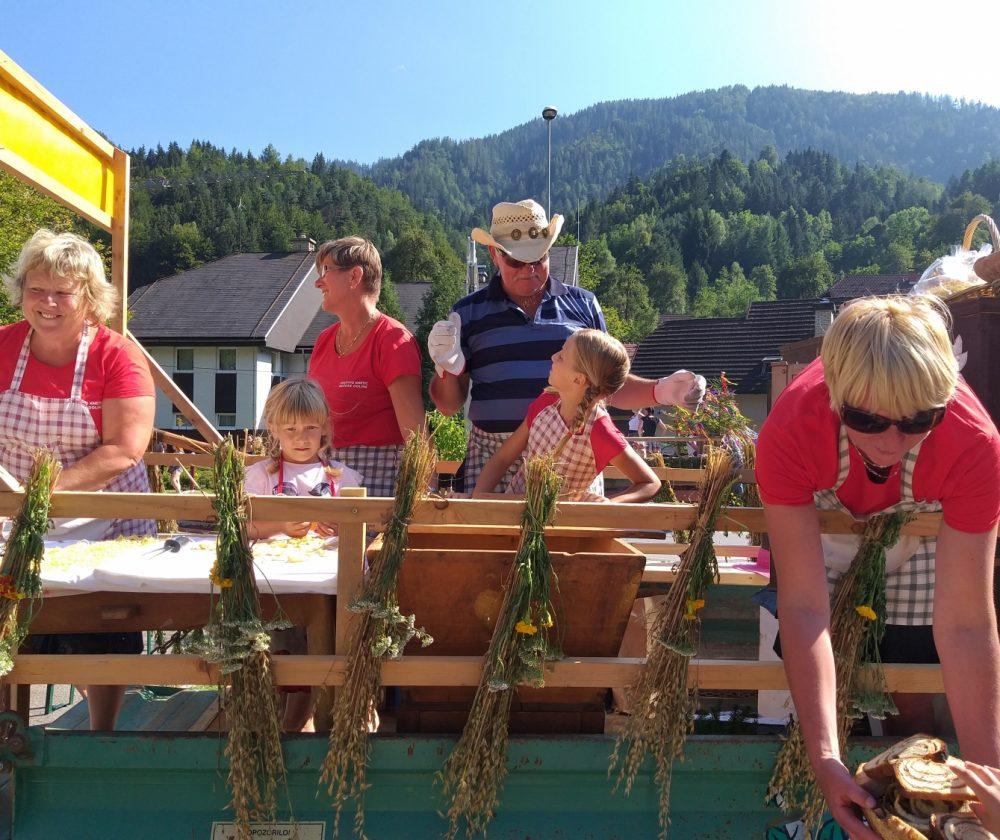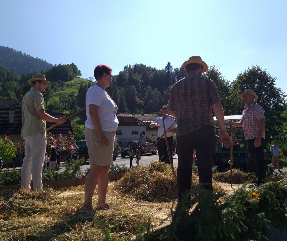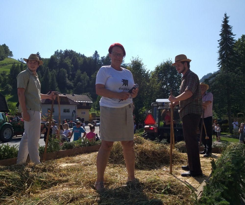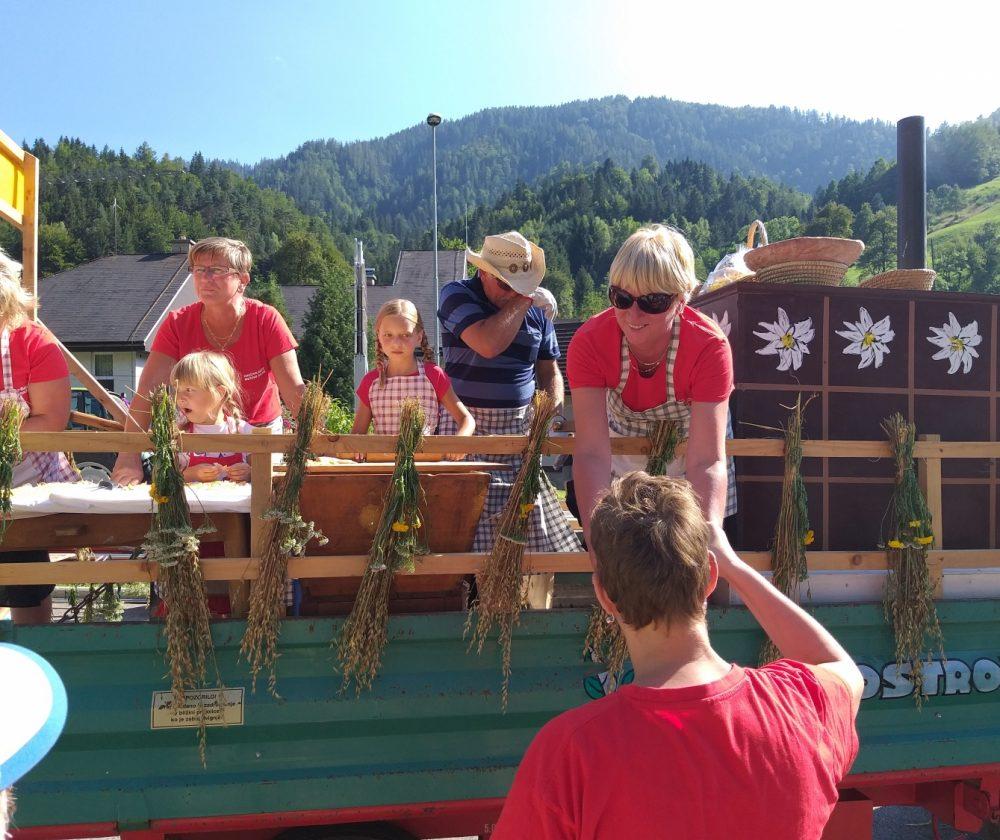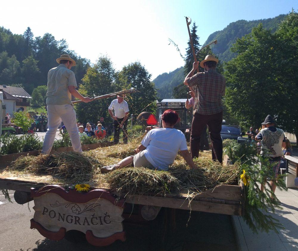 Seveda tudi letošnja povorka ni minila brez družine Pongračič, ki je nam tokrat prikazala mlatenja žita s cepci in je stalnica dogajanja na tej prireditvi, saj se povork udeležuje redno že od samega začetka. Posebnost družine Piko pa je tudi to, da so moški na vozu delali, za volan traktorja pa se je usedla kar ženska, in sicer Darinka Stopar.