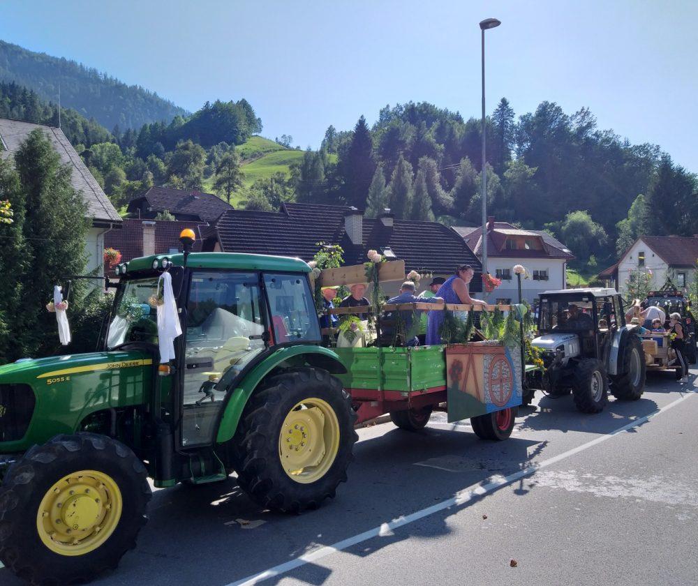 Letos se je na kmečki povorki predstavilo osem vozov iz Črne in njene okolice. Med udeleženci smo zasledili tudi voz iz sosednje občine Šoštanj, ki so ga pripravili člani TD Raztok-Šentvid. Večina udeležencev povorke, ki so jo v Črni prvič pripravili že davnega leta 1955, pa je tudi tokrat poskrbela za prikaz starih kmečkih običajev na Koroškem.
