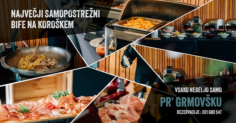 Uživajte v nedeljskem kosilu na veliki premični strehi Pr' Grmovšku. Spremljal vas bo neposredni razgled na naravo in otroška igrišča.