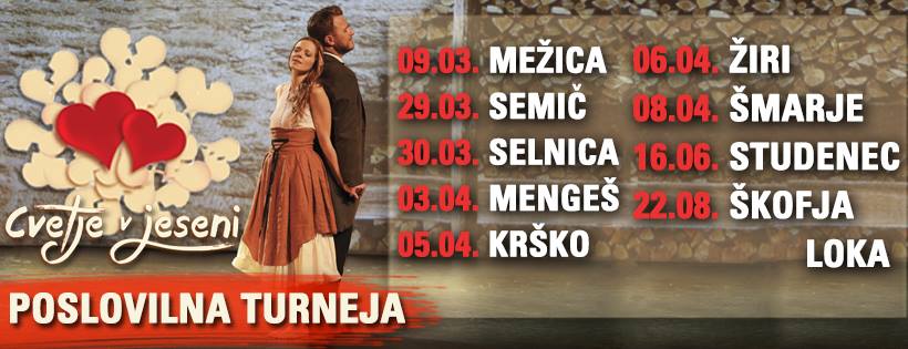 muzikala Cvetje v jeseni bo peto leto od prve uprizoritve v Ljubljanskih Križankah s poslovilno turnejo sklenila svojo pot. Priložnost za ogled igre se ponuja