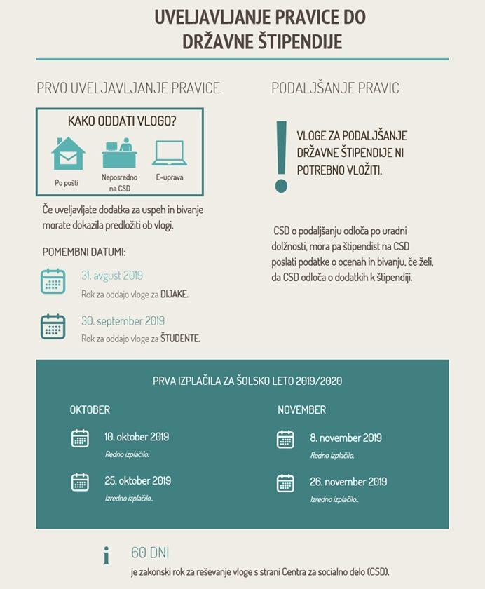 S šolskim/študijskim letom 2019/20 letos prvič ne bo potrebno oddati vloge vsem upravičencem do državne štipendije. Če pravica do državne štipendije preneha 31. avgusta ali 30. septembra, bo CSD po uradni dolžnosti podaljšal pravico na podlagi pridobljenih podatkov. Če CSD ne bo pridobil podatka o ocenah ali podatka o bivanju, bo k odločbi priložil obvestilo, da lahko dijak/študent zahteva izdajo dopolnilne odločbe, s katero mu bo ob predložitvi ustreznih dokazil dodatek priznan od dneva priznanja pravice do državne štipendije. Dopolnilna odločba bo izdana le na zahtevo dijaka ali študenta.
