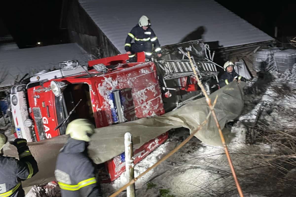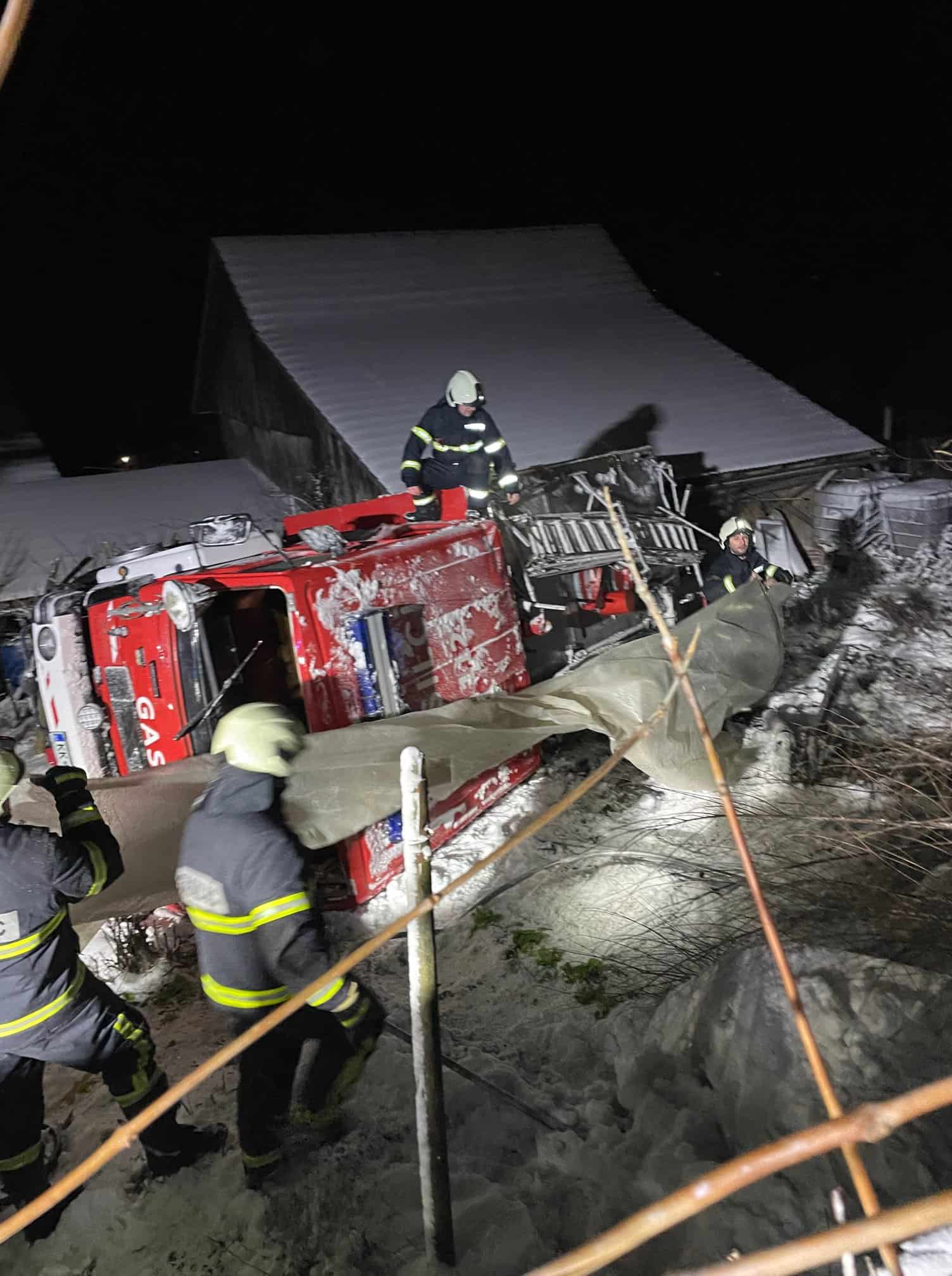 Šofer je takoj vrhunsko odreagiral in za trenutek že videl izhod iz situacije. Pa vendar je potisna sila 15 ton težkega vozila bila pretežka. Prišlo je do zdrsa cisterne s ceste. Od tam naprej se ni več dalo narediti ničesar več. Cisterno je iz bankine povleklo po bregu navzdol. Vozilo se je prevrnilo na streho in potem na levi bok. V njem je bilo 6 članov moštva. V kabini se je začlo močno kaditi, postalo je zadušljivo. Fantje, ki so še pred nekaj trenutki pomagali sokrajanu rešiti dom, so se zdaj borili za svoja življenja.
