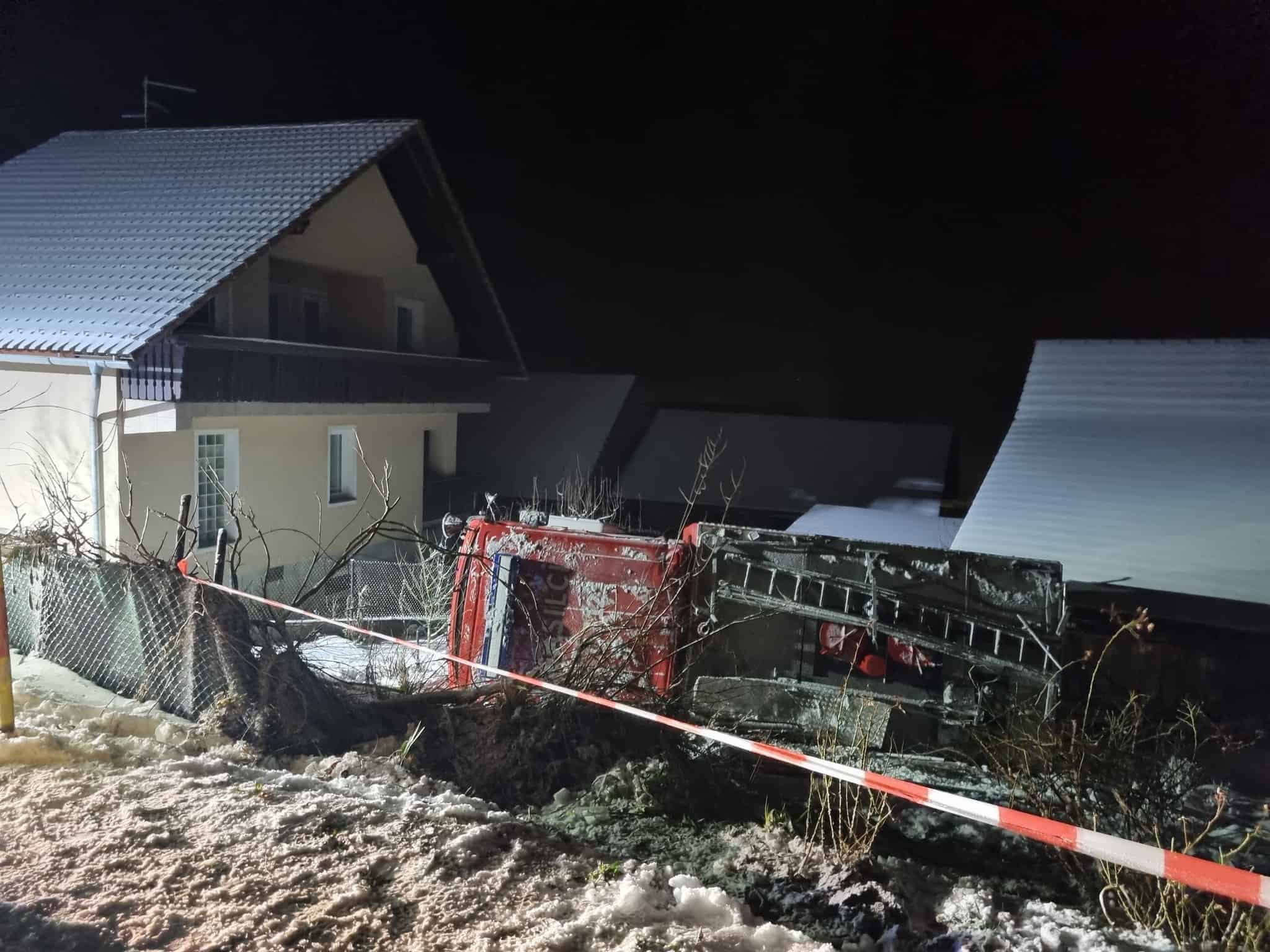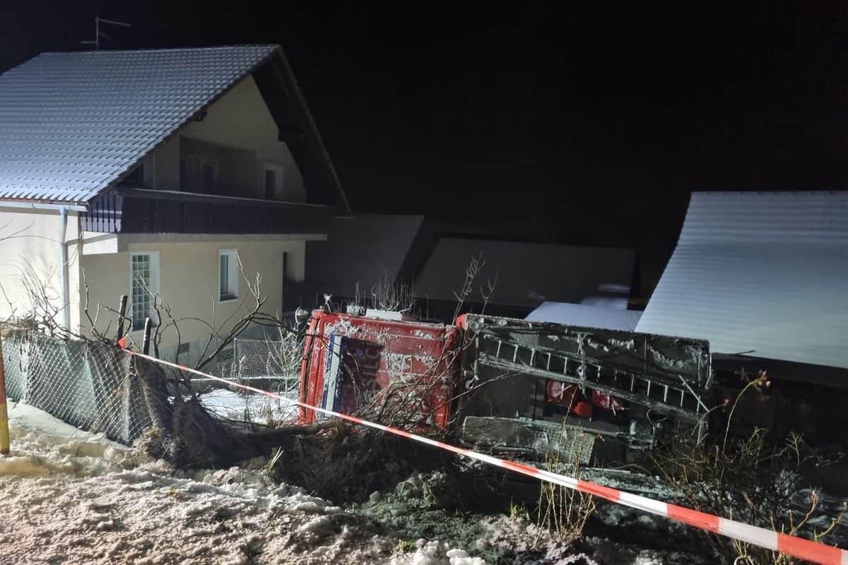 Cesta po kateri so se vračali, se dvigne v hrib in na vrhu klanca nekoliko izravna. Šofer je vozil počasi in previdno, nič ni kazalo na to, da cisterne ne bi mogel varno pripeljati v gasilski dom. A žal je bilo tako le do trenutka, ko se je cesta prevesila strmo navzdol v levi ovinek. Vsa gasilska vozila predhodno na tem odseku niso imela težav. Nato se je zgodilo nepričakovano. Zaradi obilnega sneženja, nesplužene in neposute ceste ter predhodno že povoženega snega na cestišču, je težka gasilska cisterna zdrsnila po cesti navzdol.