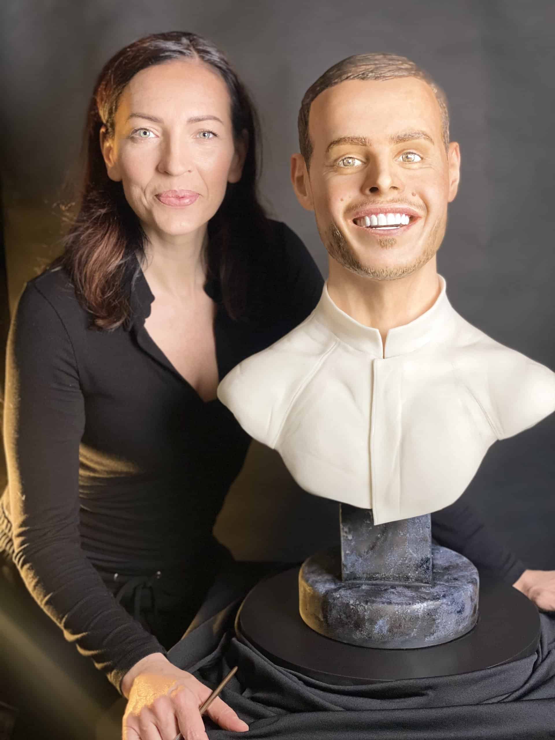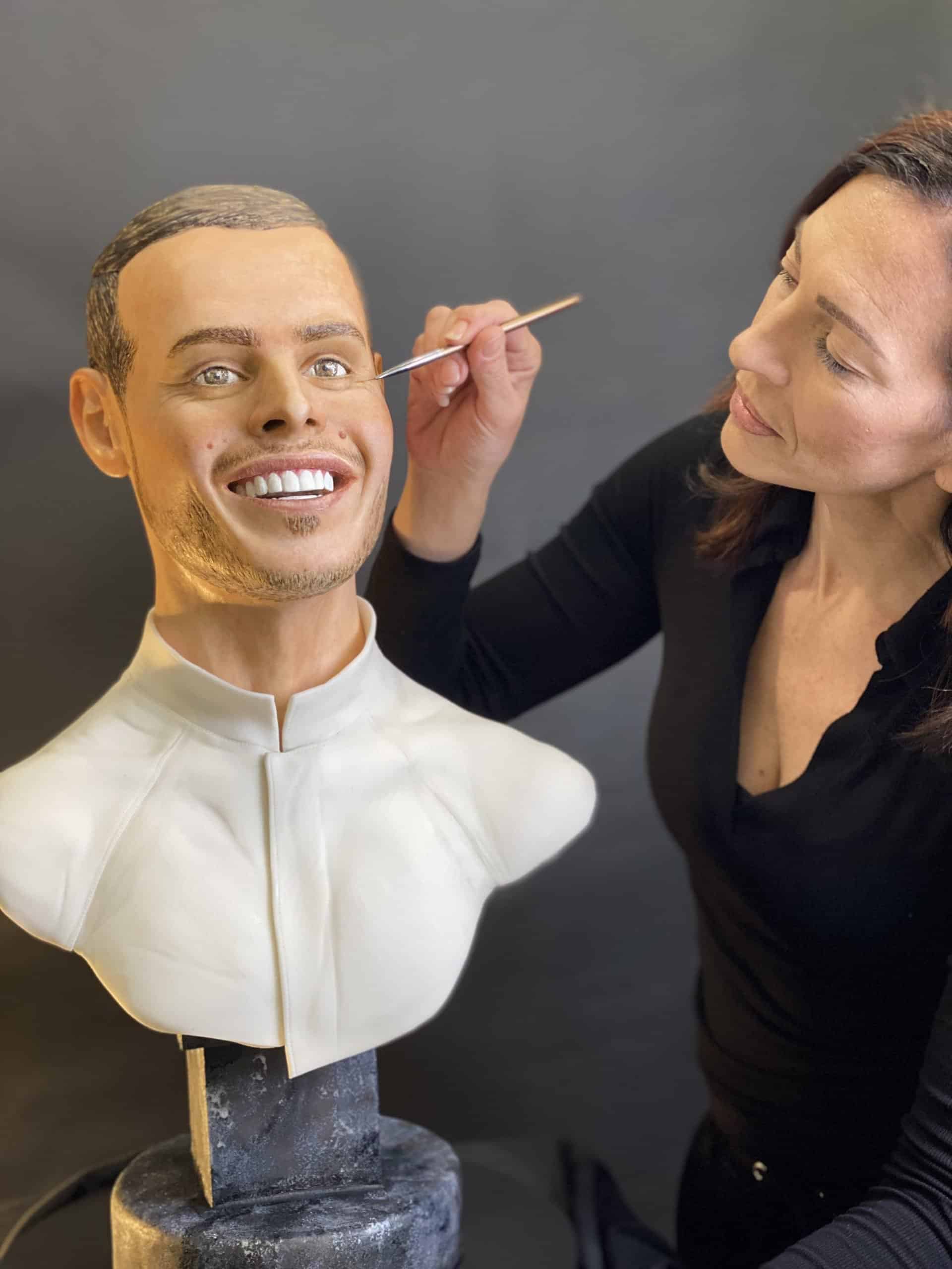 Eva Klinc še sama ne ve, koliko ur je porabila za to, da je izdelala ta kip, preprosto je nehala šteti. “Povem lahko, da sem ga začela izdelovati oktobra lani. Začela sem pri glavi, in sicer sem najprej izdelala model glave oziroma lobanje iz želatine, vanj pa sem nato vlila stopljeno čokolado”.