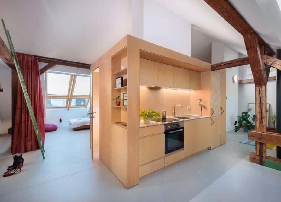 Z odlično zamišljeno zasnovo, ki v sredini prostora v kubusu združuje osrednje funkcijske enote, so preostali prostor manjše mansarde v več pogledih razbremenili. Najpomembnejšo vlogo glede zagotavljanja funkcionalnosti opravlja naravna dnevna svetloba. Skozi strešna okna prihaja v prostor iz najbolj naravne smeri – od zgoraj. To omogoča, da lahko karkoli v tem prostoru prestavimo kamorkoli, ne da bi zastrli osrednji vir svetlobe. Svoboda bivanja je tako največja, osvetlitev in funkcionalnost posameznih prostorov, ki tukaj niso strogo ločeni in omejeni, pa najbolj naravni. Da lahko manjši prostor ponudi vse, kar bi zagotovil veliki, je to odločilnega pomena.