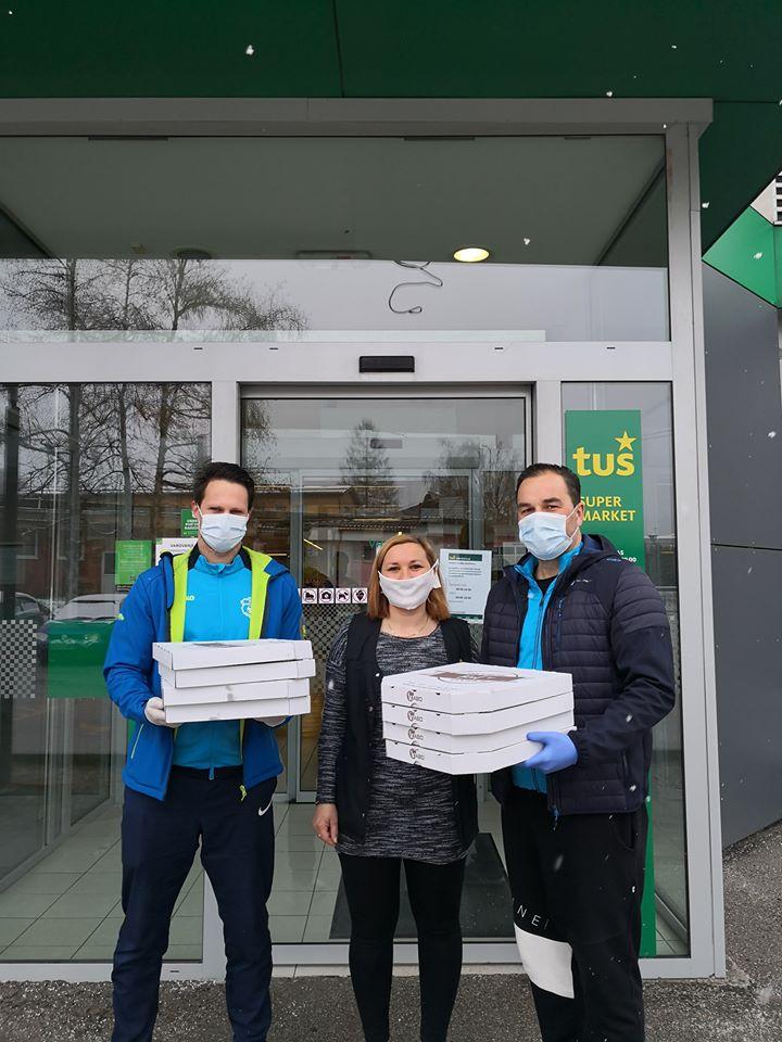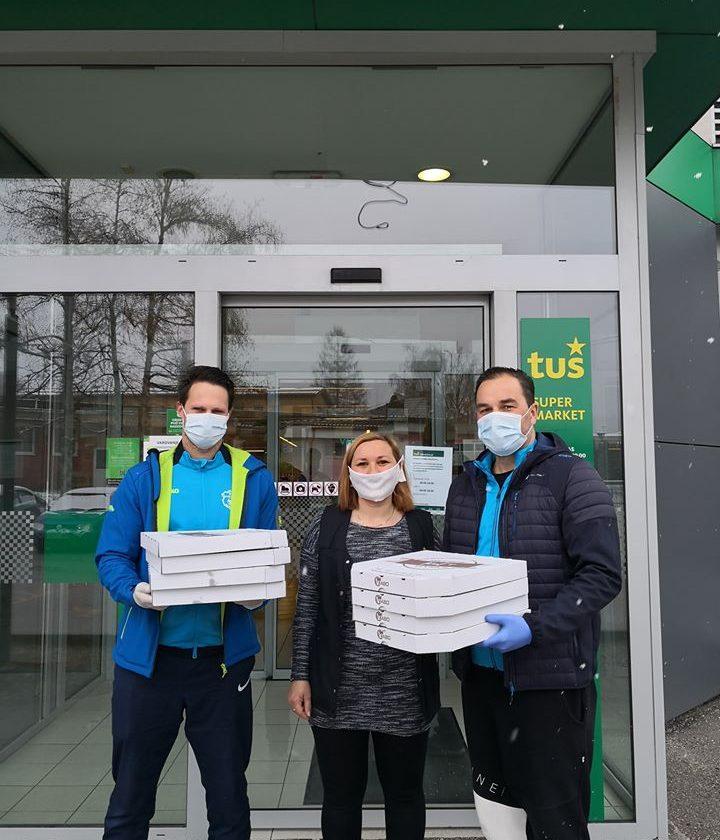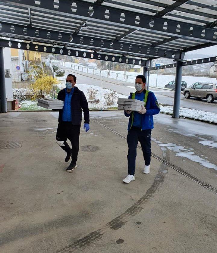 Anže Pečnik, strokovni vodja kluba in Peter Stočko, predsednik, sta tako včeraj predala pice iz picerije Kuf'r zaposlenim v Zdravstveno - reševalnem centru Koroške, Tuš supermarketu Ravne in Sparu Ravne.