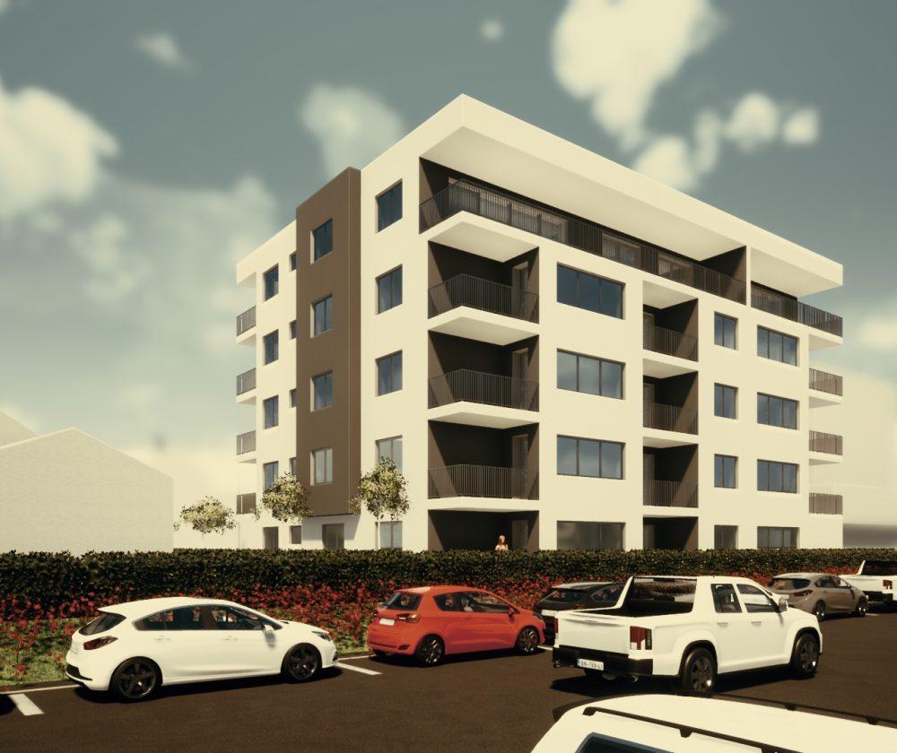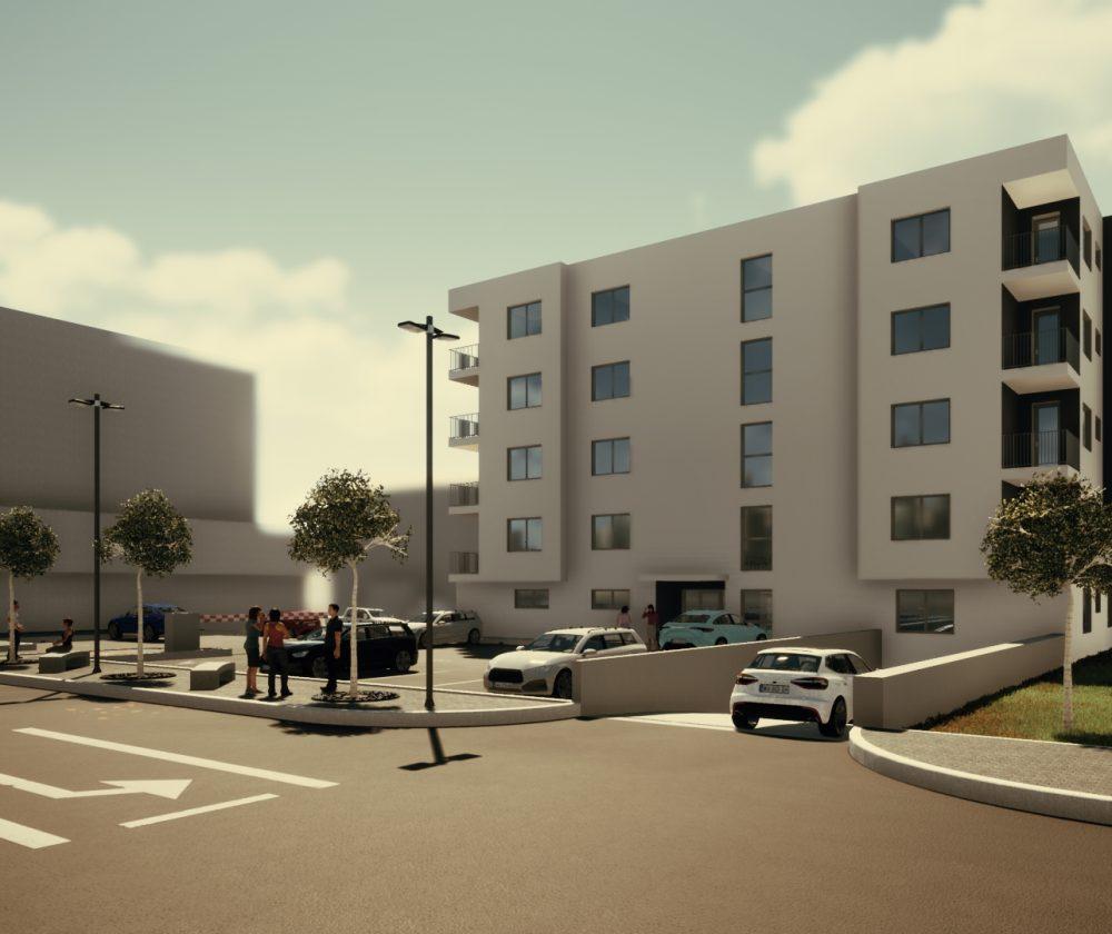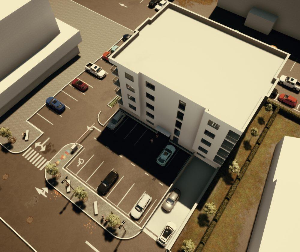 parkirnim mestom za 26 osebnih avtomobilov. Pritlična etaža bo poleg treh stanovanj vsebovala tudi