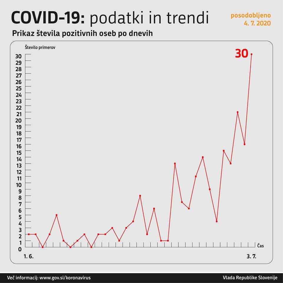 Trend obolelosti s koronavirusom v Sloveniji na dan 3. 7. 2020 (00:00-24:00):