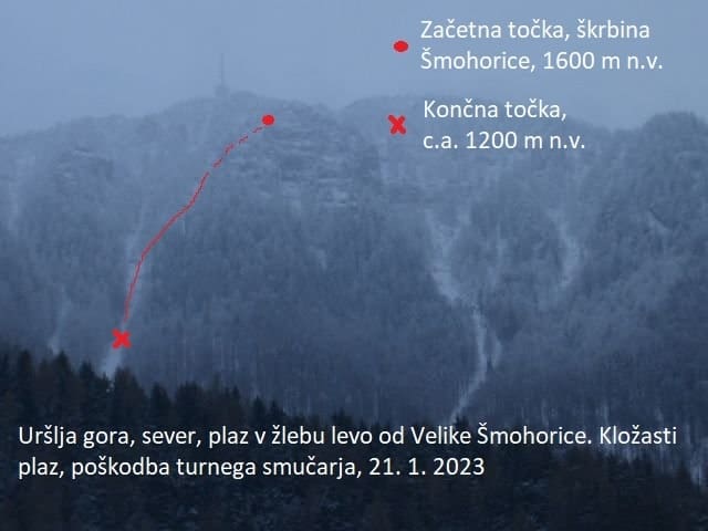 V soboto se je sprožil plaz na severni strani Uršlje gore, v žlebu, levo od Velike Šmohorice, na nadmorski višini 1600 m.