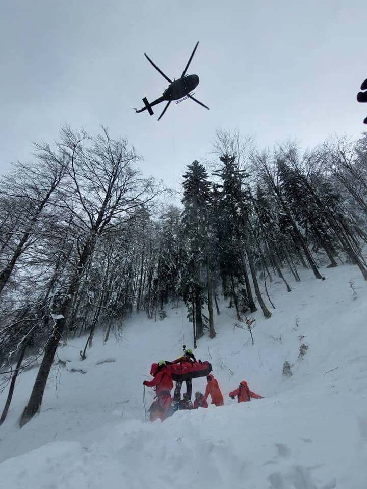 Reševalci GRS Koroške so poškodovanega smučarja oskrbeli, posadka helikopterja Slovenska vojska, pa ga je skupaj z reševalcem letalcem prepeljala v Splošno bolnišnico Slovenj Gradec.