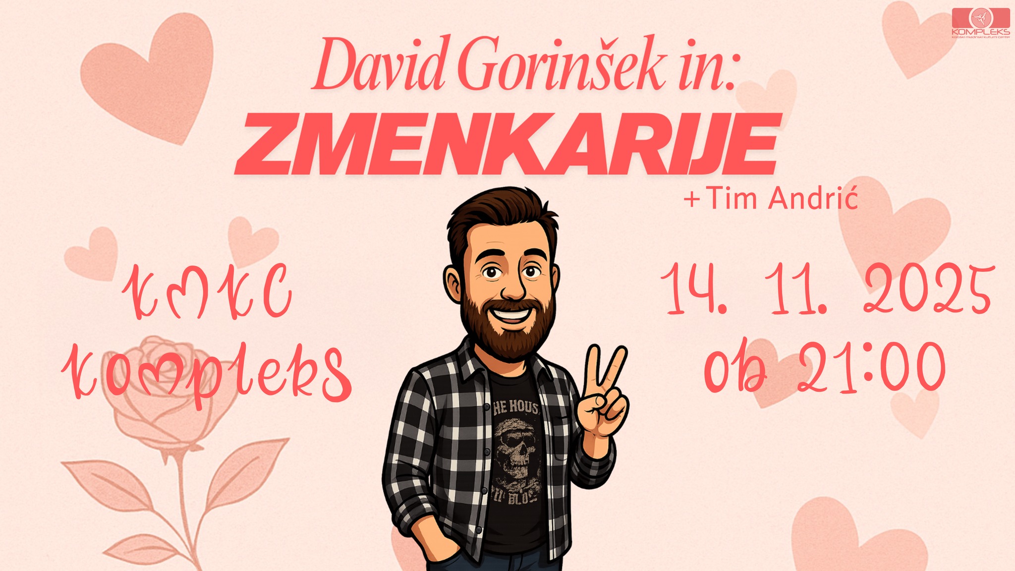 Stavek ''A ti pa kar sama tukaj?'' slišimo večkrat v Kompleksu, na zmenek se tudi marsikdo odpravi v Kompleks, ker tukaj res vlada prava ljubezenska energija. Da pa bo malce lažje narediti prvi korak, v Kompleksu tokrat pripravljajo prave zmenkarije! Si samski_a, zabaven_a in pripravljen_a spoznati nove ljudi? Potem je čas, da se pridružiš zabavnemu večeru z zmenkarijami v Kompleksu! Sicer ne bo 14. februar, bo pa zato 14. november in čaka vas sproščeno druženje, veliko smeha, nekaj nerodnih trenutkov za spomin in morda … tisti pravi/ta prava! Pripravite se na najbolj smešen “zmenek” vašega življenja! Kaj bomo videli? Dva neznanca, prevezane oči in spoznavanje "na slepo". Mesta so omejena, zato se čim prej prijavite na tej povezavi in mogoče Kupidova puščita zadane ravno vas. Ostali pa vabljeni na predstavo in dozo smeha: ZMENKARIJE – KMKC Kompleks!