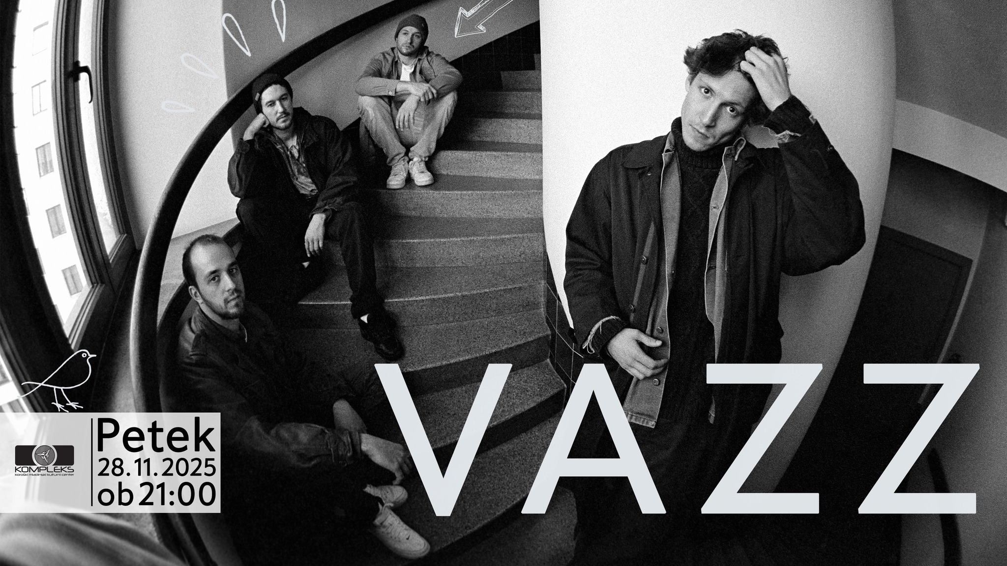 Vsestranski ljubljanski umetnik Mark Jacob Cavazza aka VAZZ je v glasbenih vodah že od zgodnjega otroštva, ko je svojo strast do rapa odkril s pomočjo pisanja poezije. Z izdajo treh solo albumov – Individuum (2018), Jacob (2019) in Kodeks (2022) – pri katerih so mu produkcijsko podporo nudili Hyu, YNGFirefly in Emiljo AC, ter nedavno z bendovskim albumom Psiha (2024), se je uveljavil kot eden najvidnejših mladih hiphop ustvarjalcev v Sloveniji. Projekt VAZZ se je v letu 2023 razširil v glasbenem smislu, z instrumentalno podporo živega benda, ki bo navdušil tudi v Kompleksu.