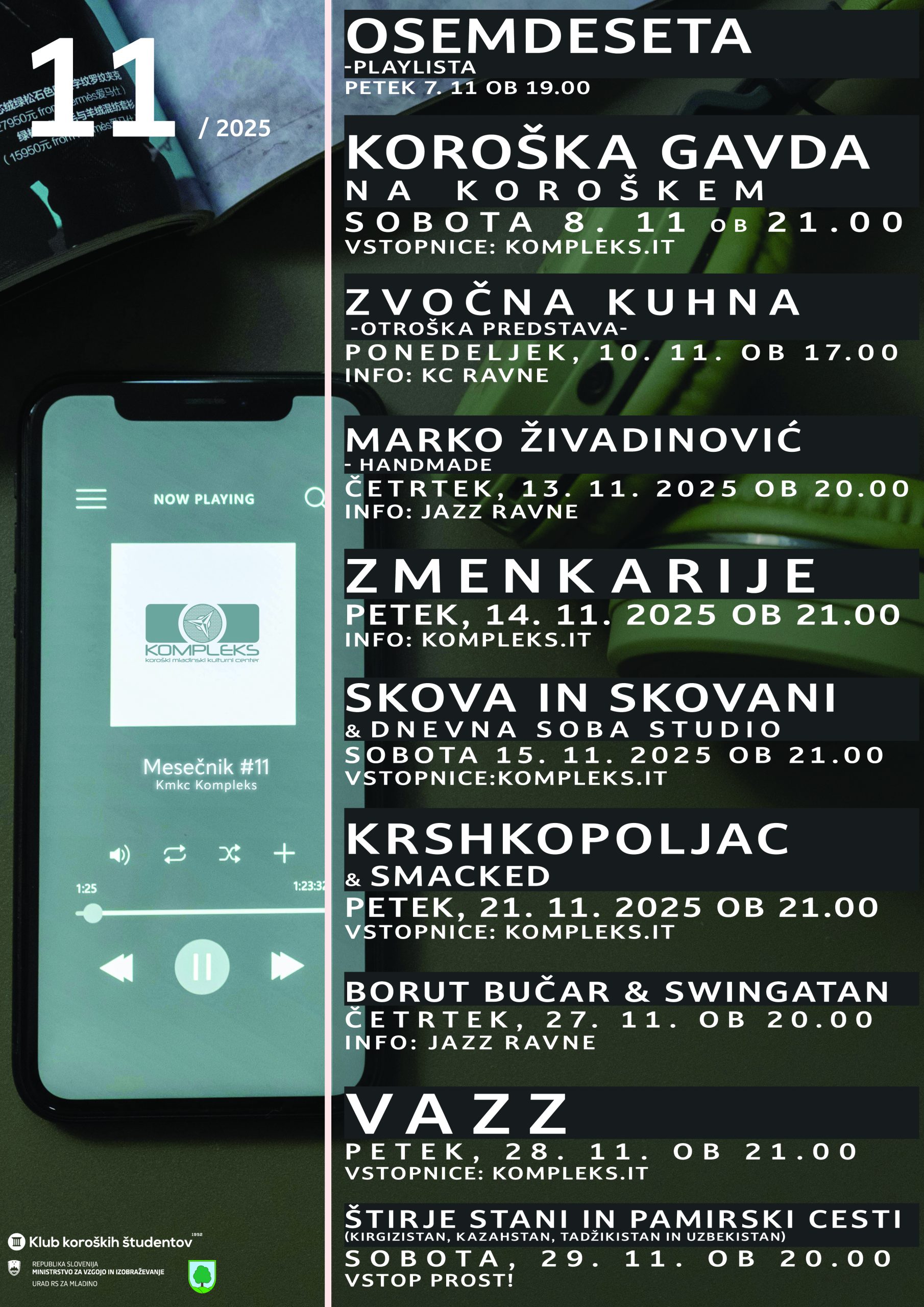 Prvi jesenski žuri v Kompleksu so že za nami, a nč' bat, tudi novemer bo pester in za vsak okus se bo v najlepši kleti na Ravnah na Koroškem nekaj našlo.