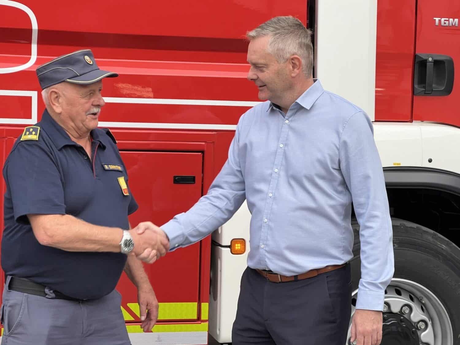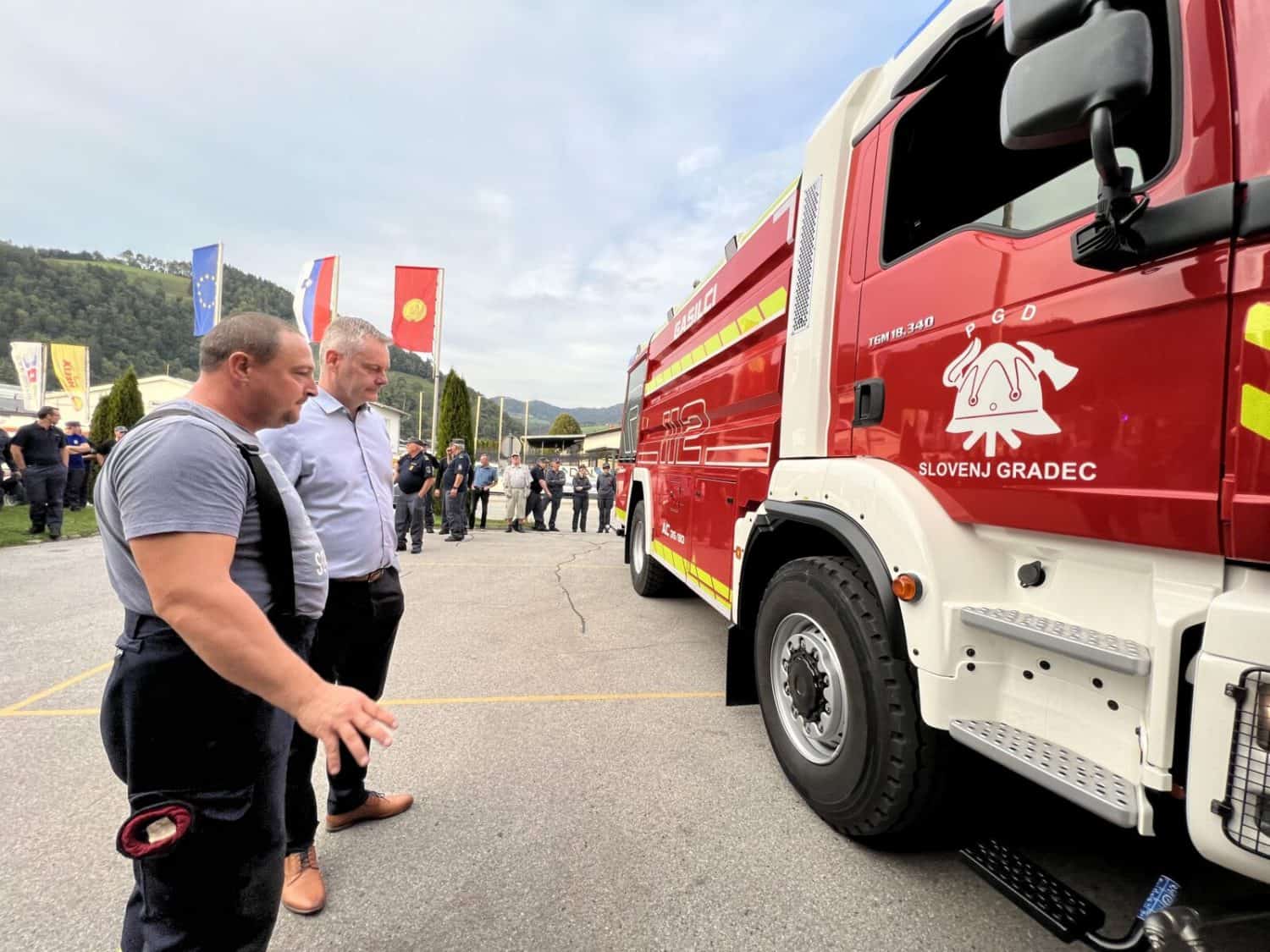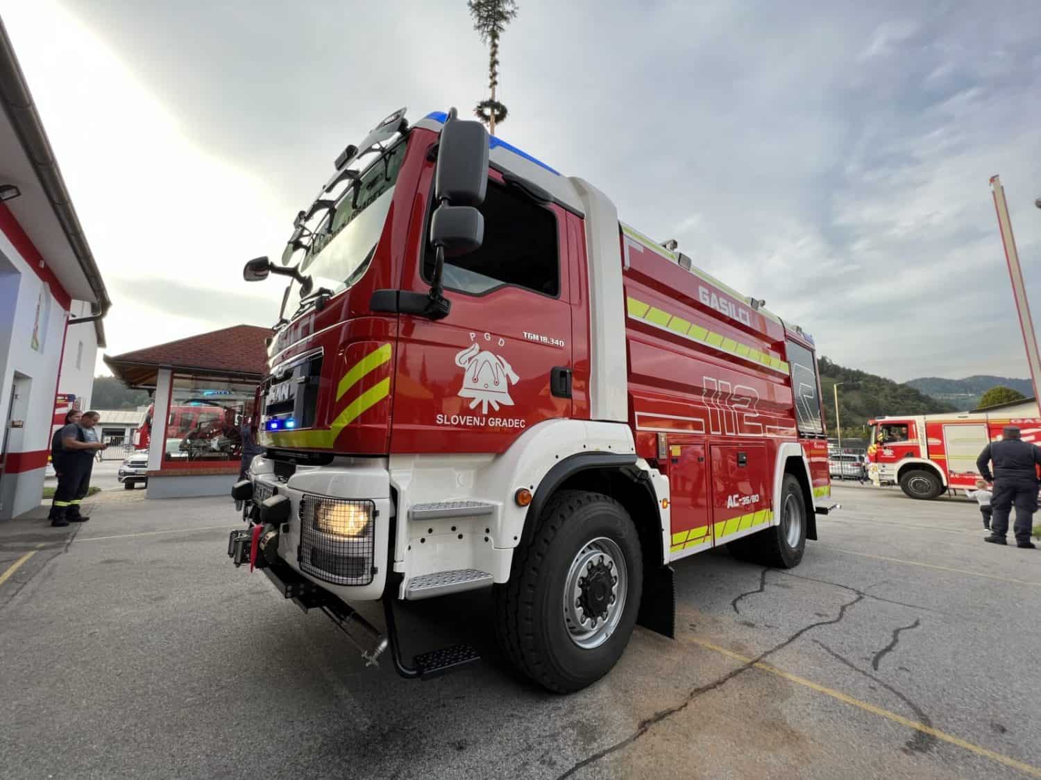 Letos mineva 150 let od ustanovitve Prostovoljnega gasilskega društva Slovenj Gradec. V počastitev visokega jubileja so v Slovenj Gradcu pripravili številne dogodke. Tako je bila včeraj v mestnem jedru prikazana gasilska vaja vseh društev Gasilske zveze Mislinjske doline, o čemer smo že poročali TUKAJ. Danes pa je potekala svečanost ob prevzemu novega vozila GVC-3 oz. AC 35/80.