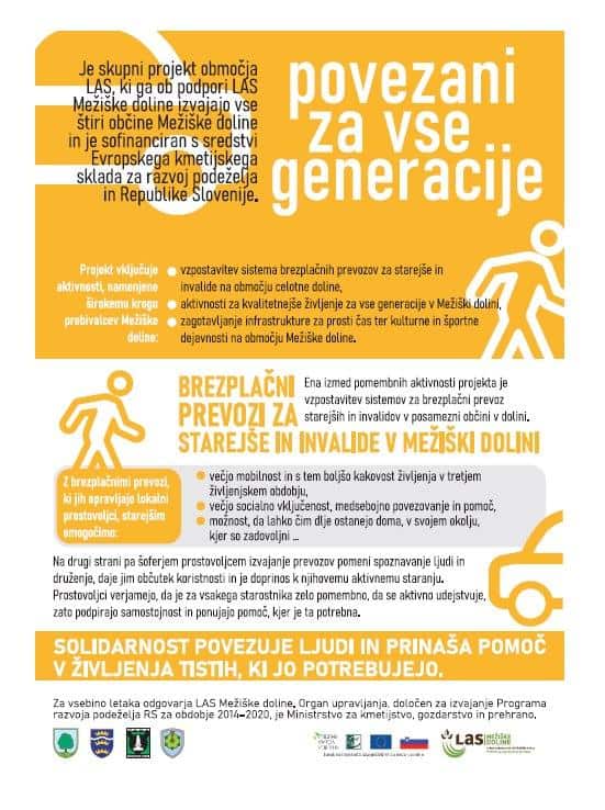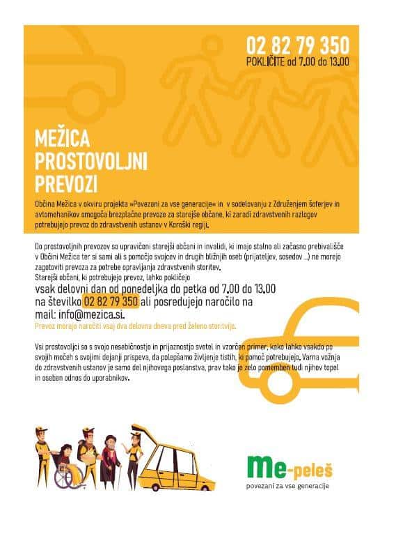 Kot so ob tem navedli na občini, je namen projekta »PROSTOVOLJNI PREVOZI ME-PELEŠ, MEŽICA« omogočiti brezplačni prevoz starejših občanov in invalidov Občine Mežica do zdravstvenih ustanov na območju Koroške zaradi koriščenja zdravstvenih storitev.