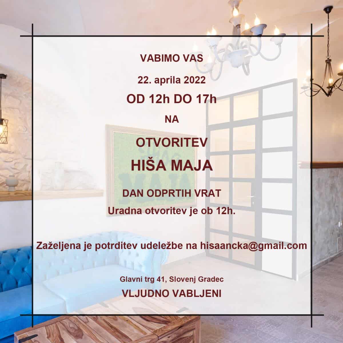 Zdaj pa jih čaka še uradno odprtje Hiše Maja, in sicer v petek ob 12. uri, kamor ste vljudno povabljeni tudi vi. Okusno obnovljena "Fantomska hiša" v centru Slovenj Gradca, preimenovana v Hiša Maja, je od Ančke oddaljena le 150 metrov oziroma 2 minuti hoje. Sobe in apartmaji so vrhunsko opremljeni. Na voljo so tudi sobe s kadjo. V Deluxe apartmaju Sandek pa je tudi infra savna.