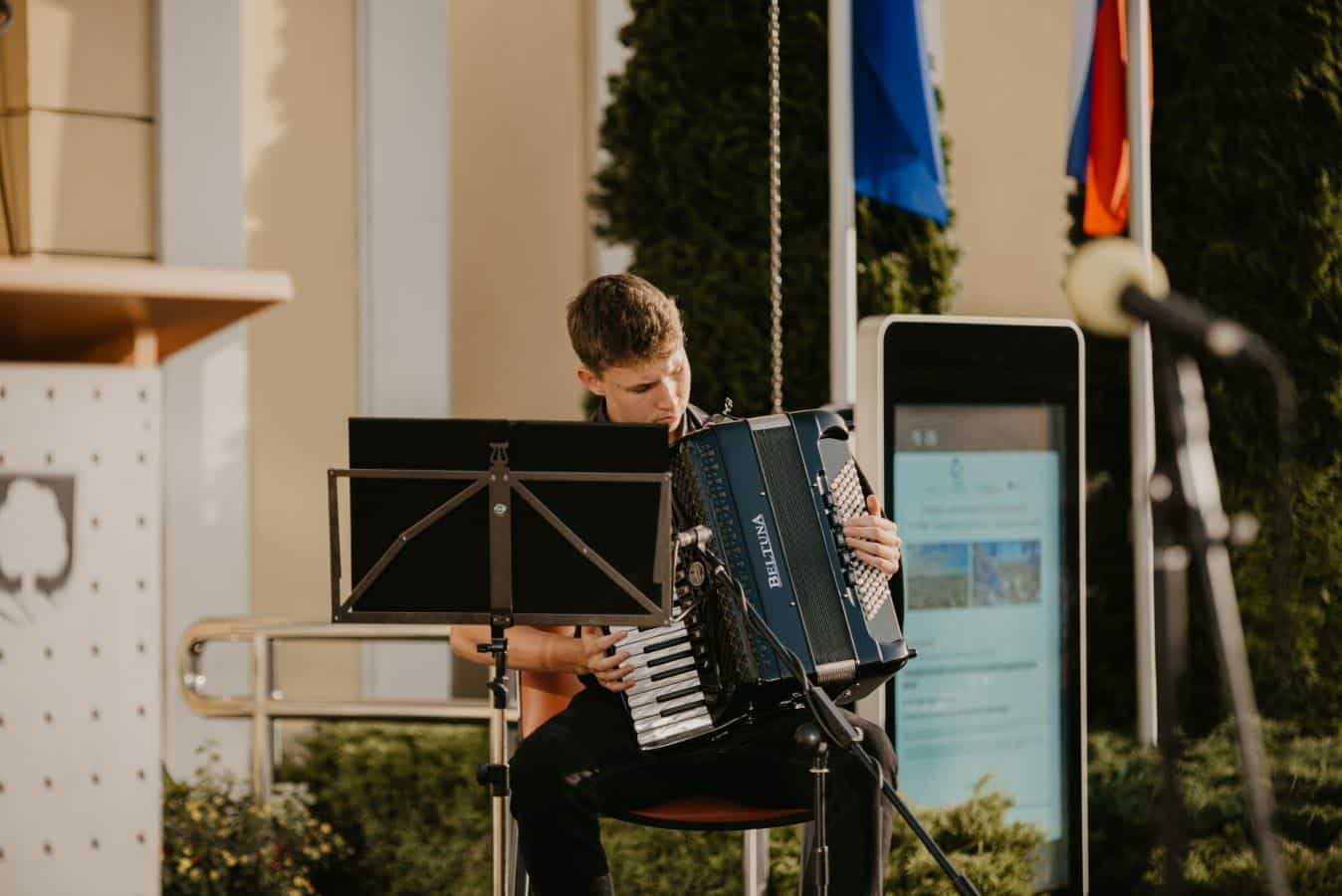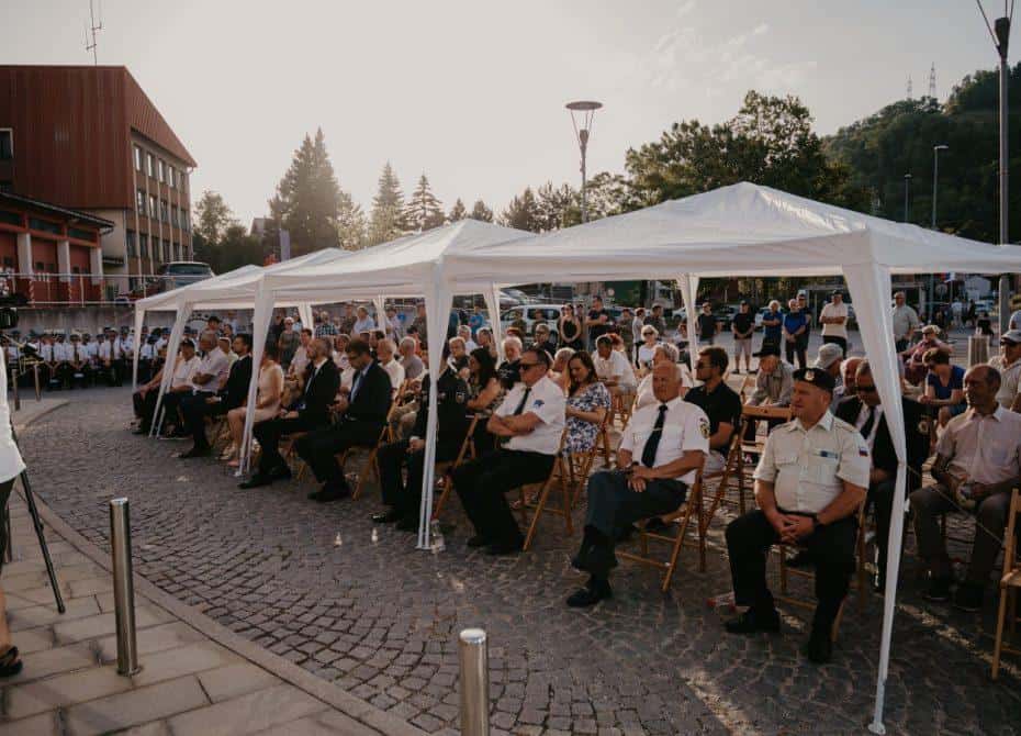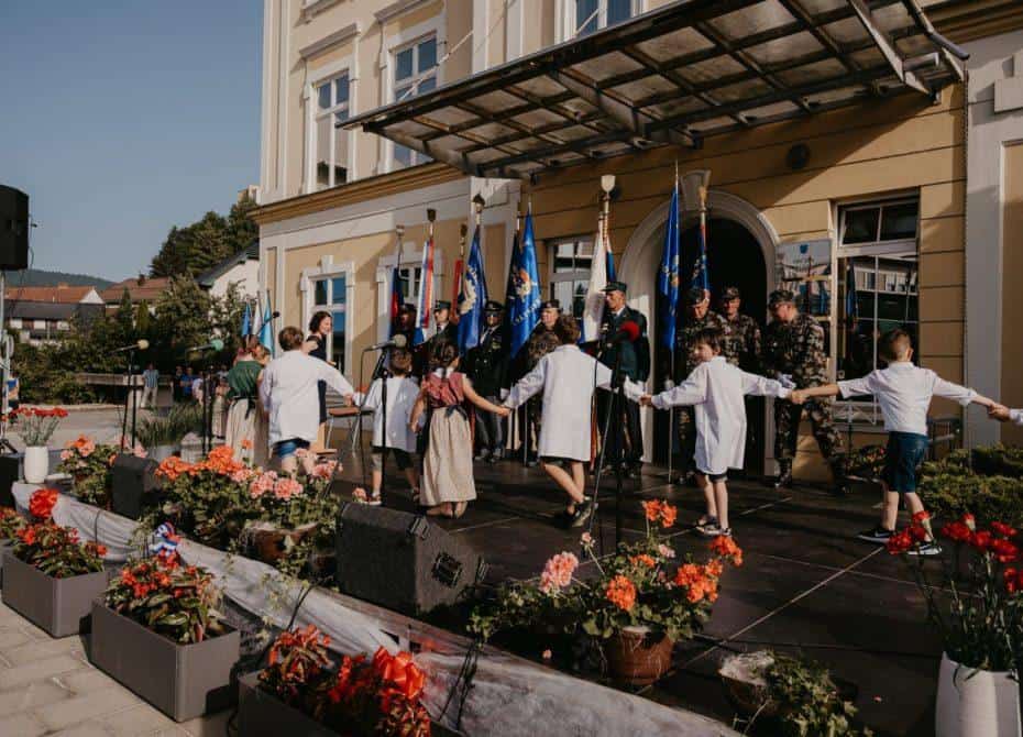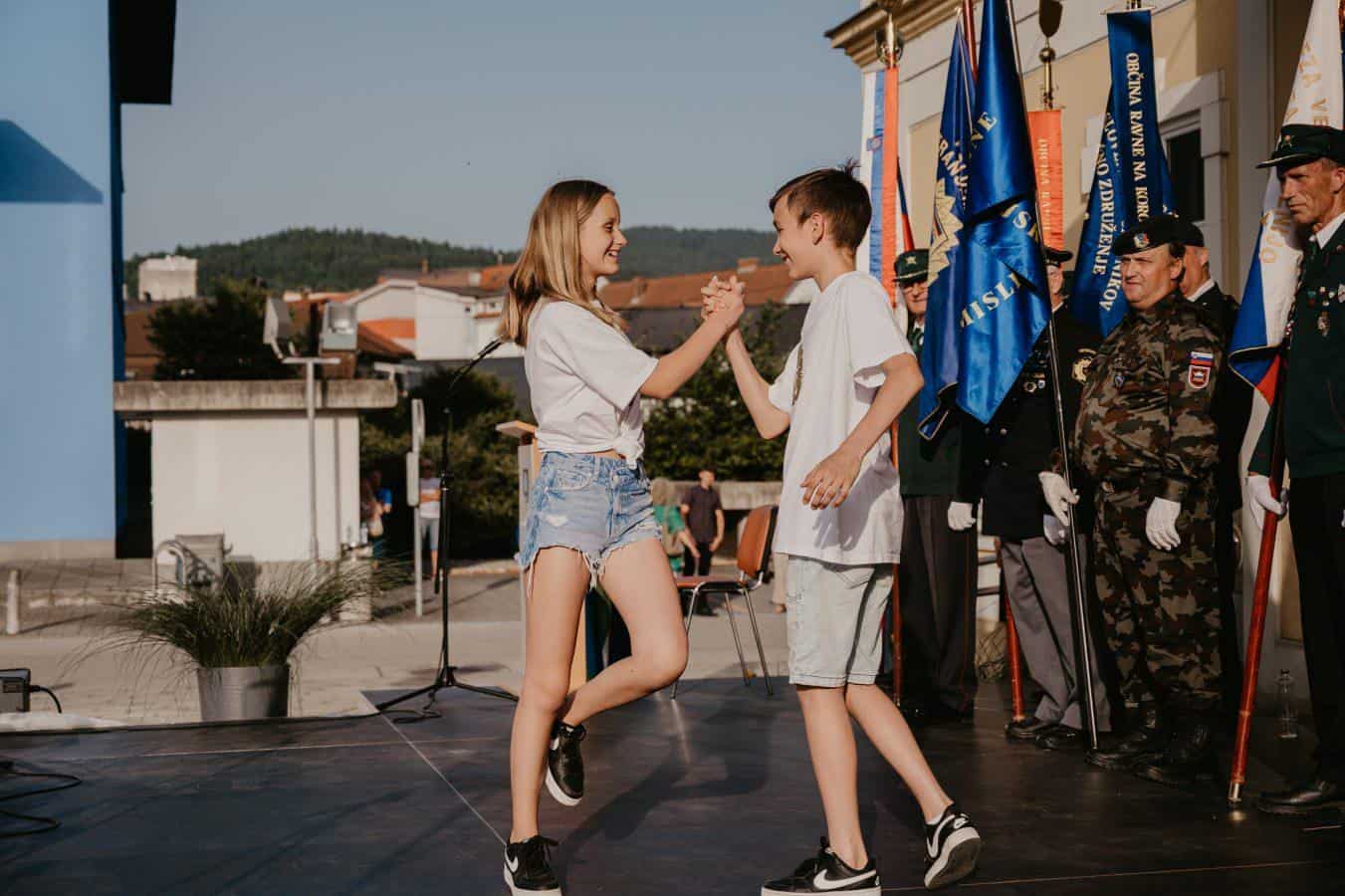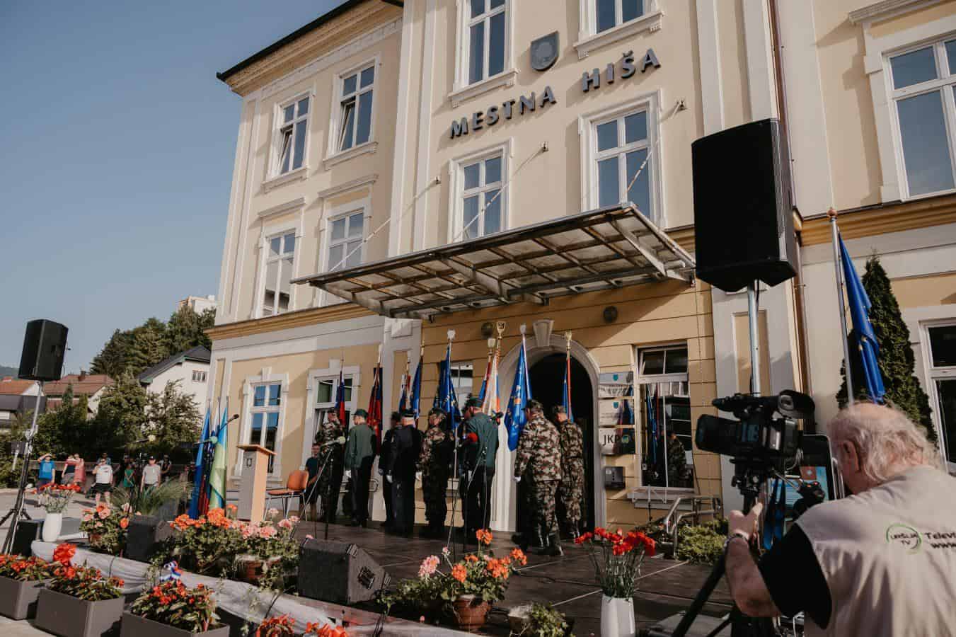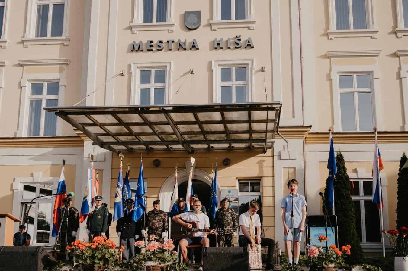 V plesnih korakih pa sta zbrane navdušila Jon Mori in Ina Belaj. Na harmoniki je učenec Glasbene šole Ravne Andraž Gangl izvedel narodni napev in zimzeleno Avsenikovo Slovenija, od kod lepote tvoje. Za posebej slavnostno vzdušje so poskrbele članice in člani našega Pihalnega orkestra Železarjev Ravne ter mnogi praporščaki pod vodstvom Jožeta Temnikarja.