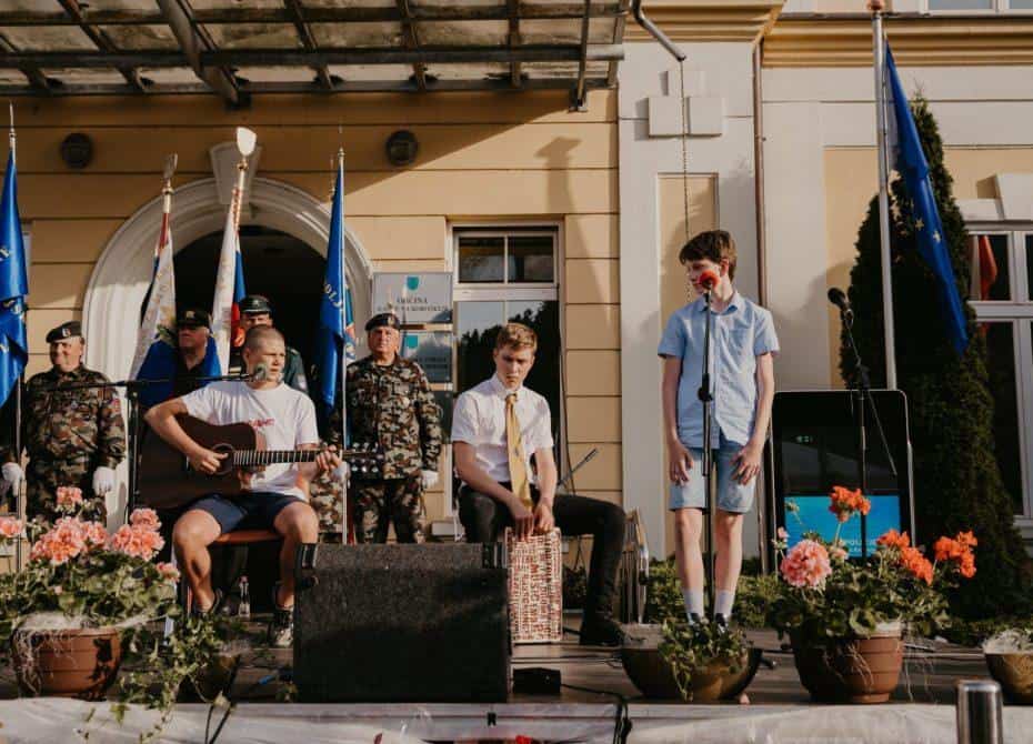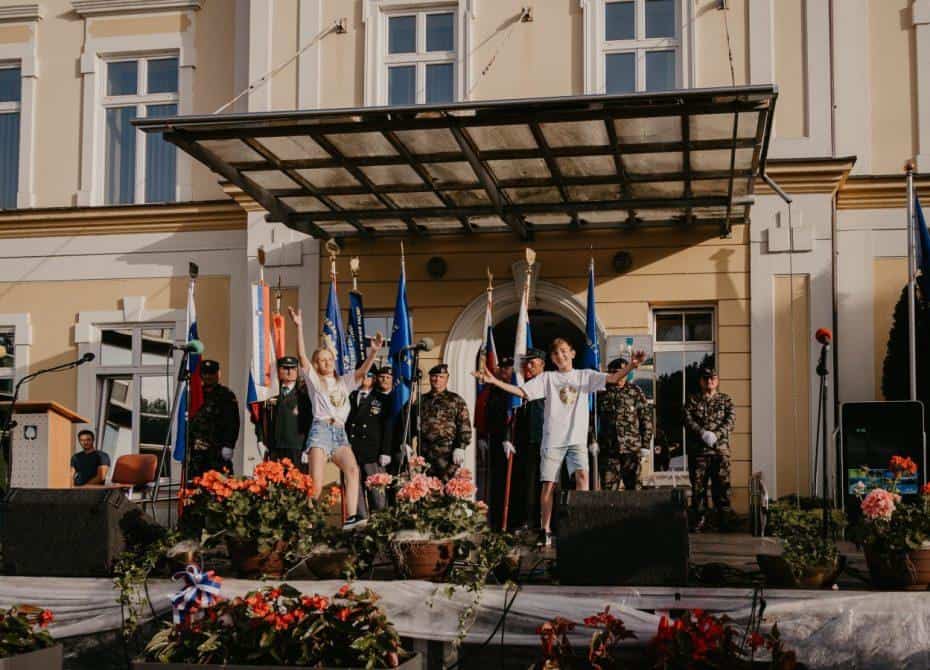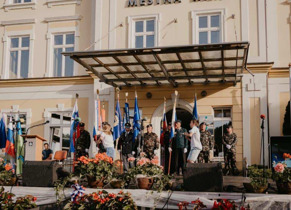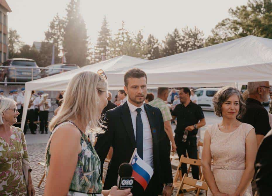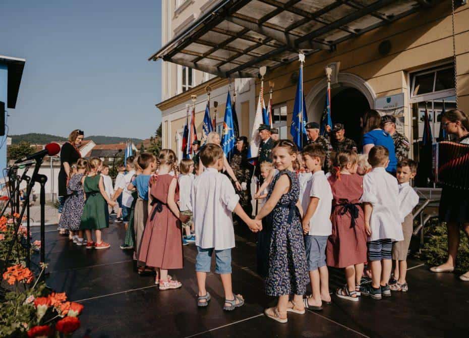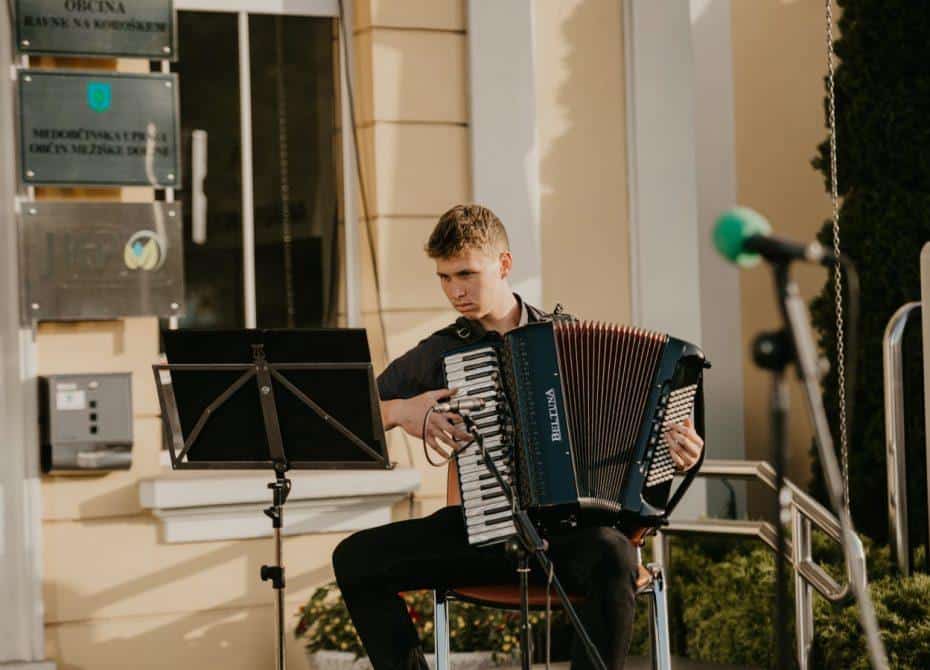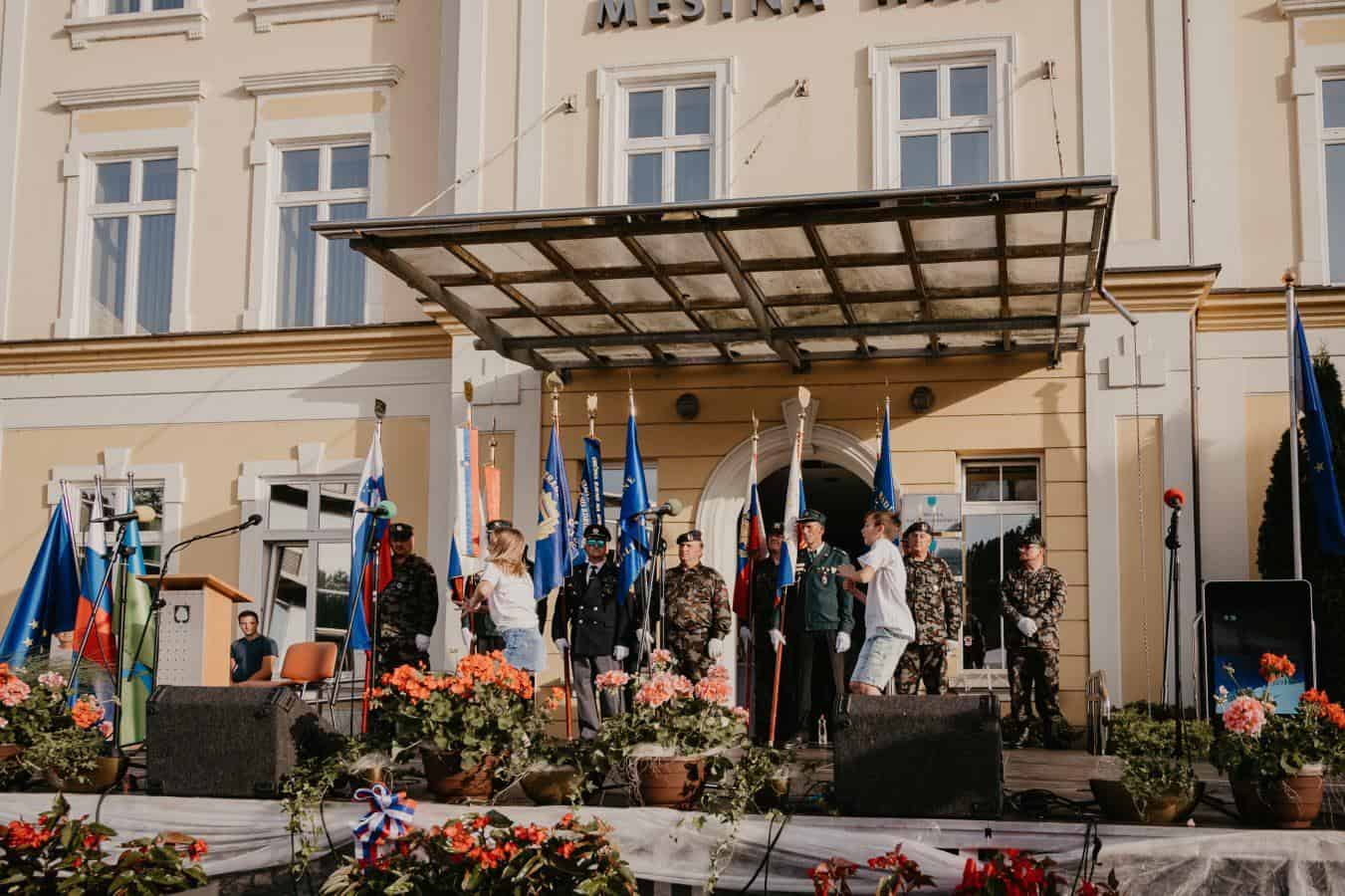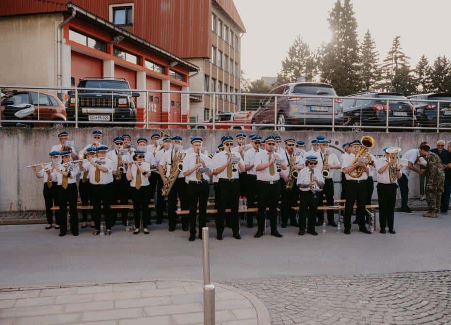 V plesnih korakih pa sta zbrane navdušila Jon Mori in Ina Belaj. Na harmoniki je učenec Glasbene šole Ravne Andraž Gangl izvedel narodni napev in zimzeleno Avsenikovo Slovenija, od kod lepote tvoje. Za posebej slavnostno vzdušje so poskrbele članice in člani našega Pihalnega orkestra Železarjev Ravne ter mnogi praporščaki pod vodstvom Jožeta Temnikarja.