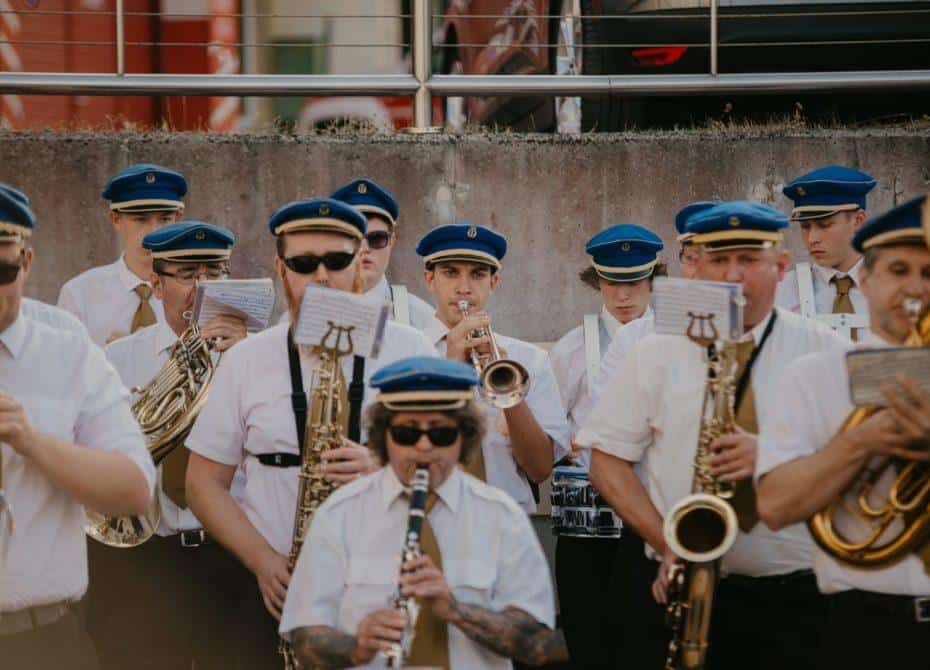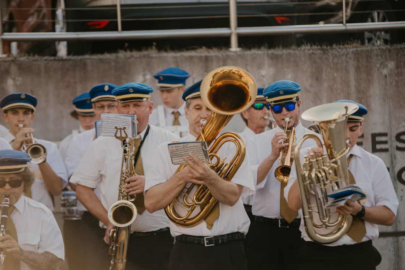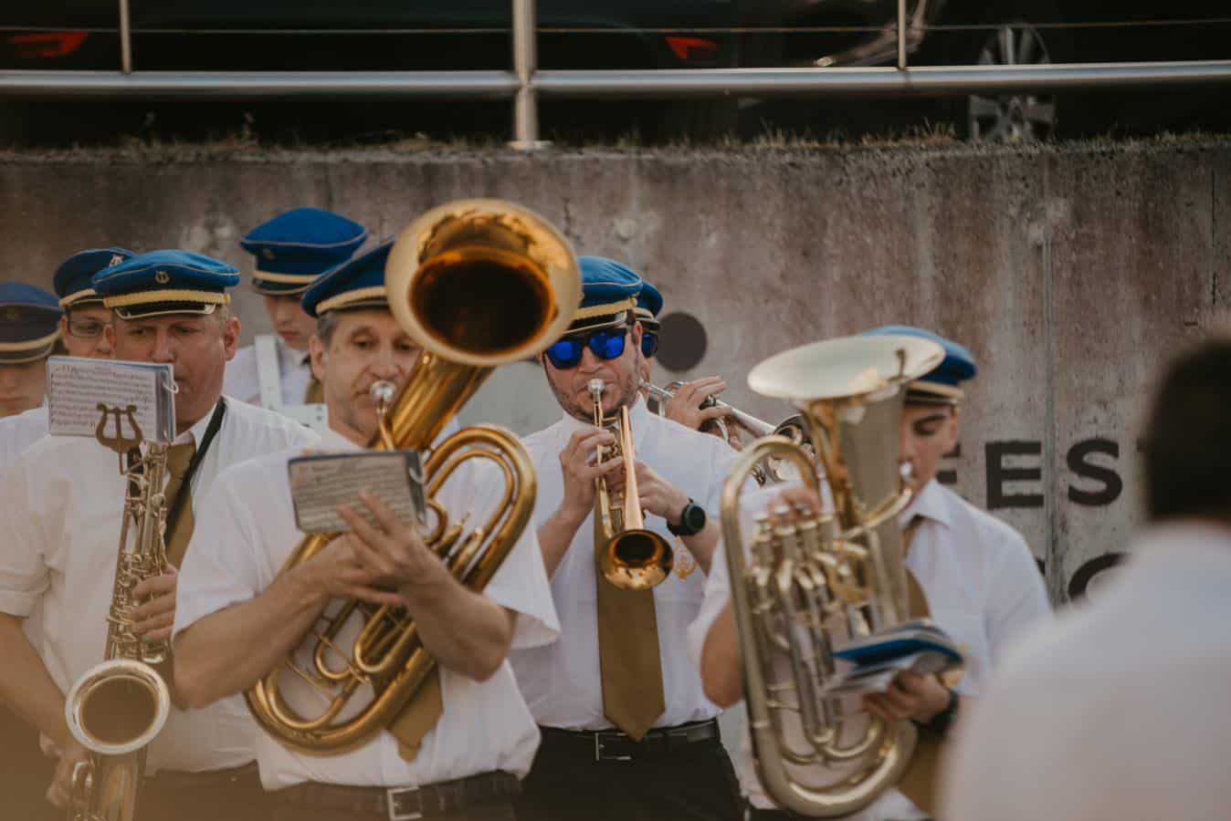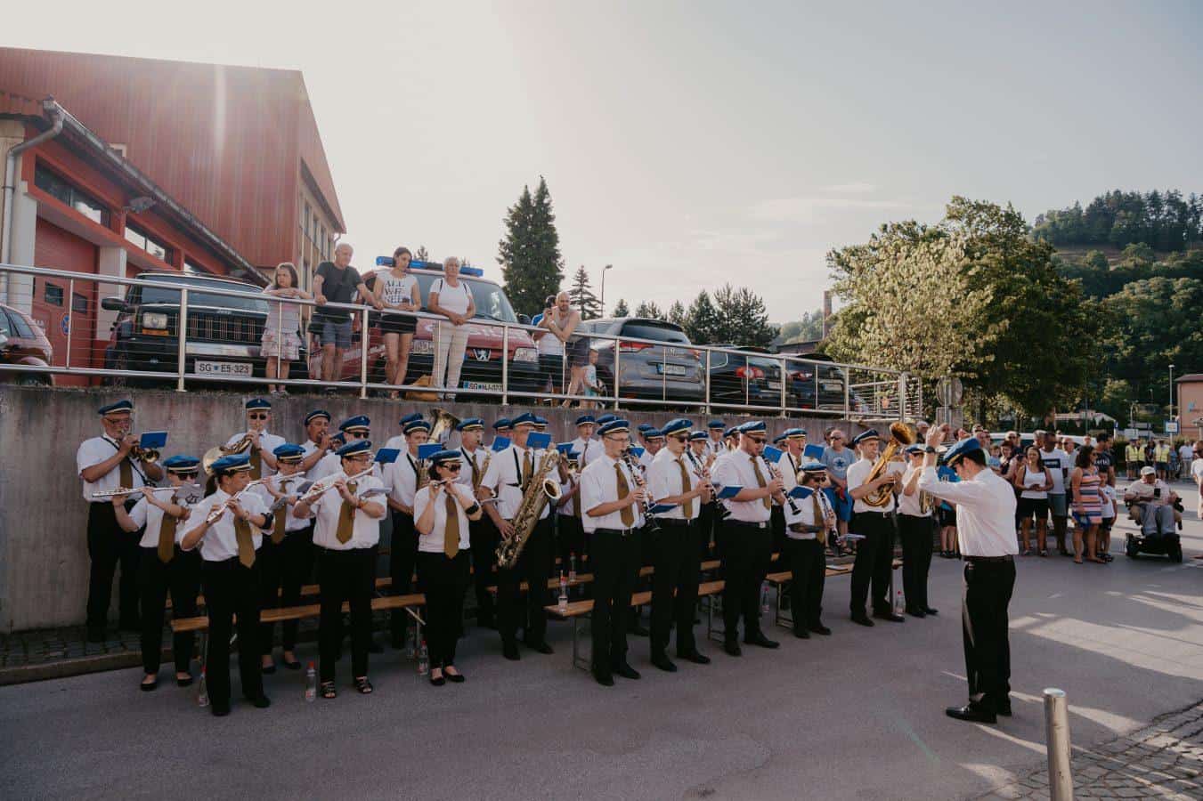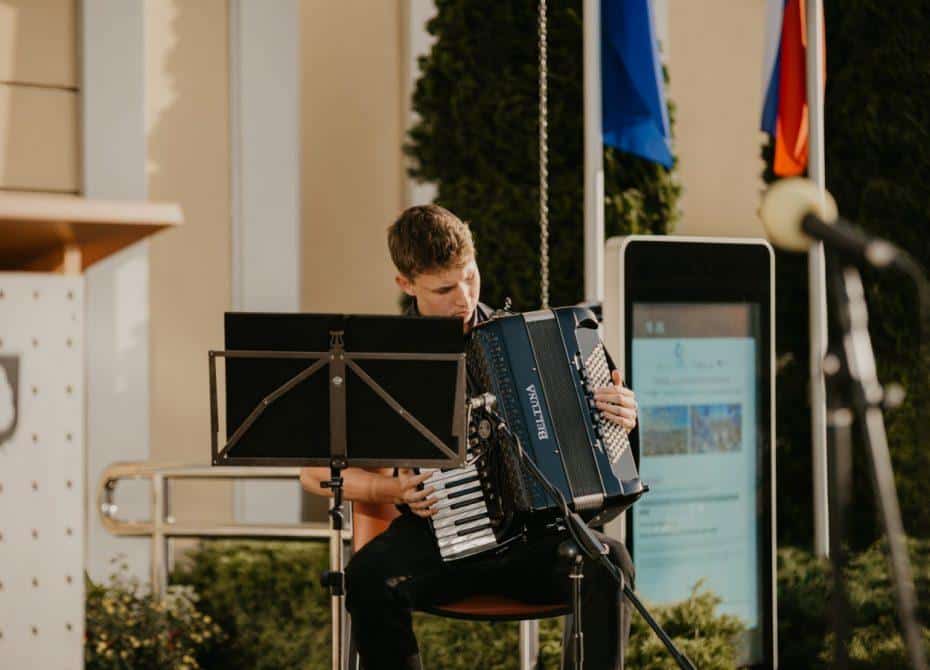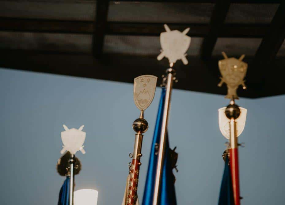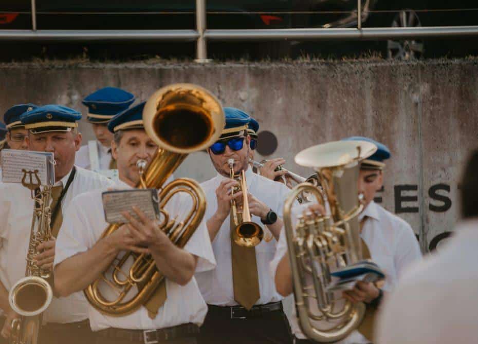 V plesnih korakih pa sta zbrane navdušila Jon Mori in Ina Belaj. Na harmoniki je učenec Glasbene šole Ravne Andraž Gangl izvedel narodni napev in zimzeleno Avsenikovo Slovenija, od kod lepote tvoje. Za posebej slavnostno vzdušje so poskrbele članice in člani našega Pihalnega orkestra Železarjev Ravne ter mnogi praporščaki pod vodstvom Jožeta Temnikarja.