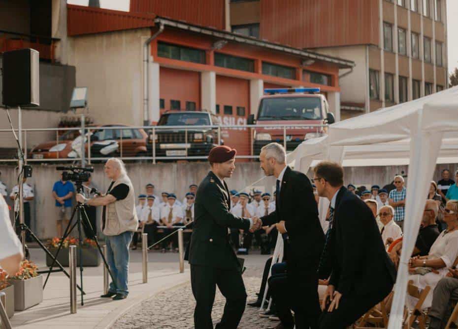 Zbrane sta slavnostno nagovorila tudi poveljnik 74. Pehotnega polka Slovenske Vojske podpolkovnik Jure Himelrajh in minister za delo, družino, socialne zadeve in enake možnosti Janez Cigler Kralj, ki ju je občinstvo za povedano večkrat nagradilo s spontanimi aplavzi.