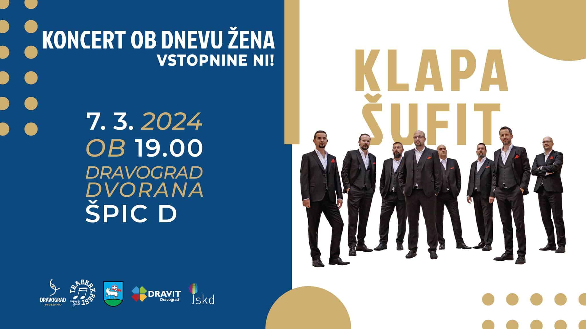 Drage dame, dekleta, žene, vse, ki imate rade lepe melodije, vabljene v četrtek, 7. marca 2024, ob 19. uri v dvorano Špic D, kjer bo samo za vas nastopila imenitna klapa Šufit.