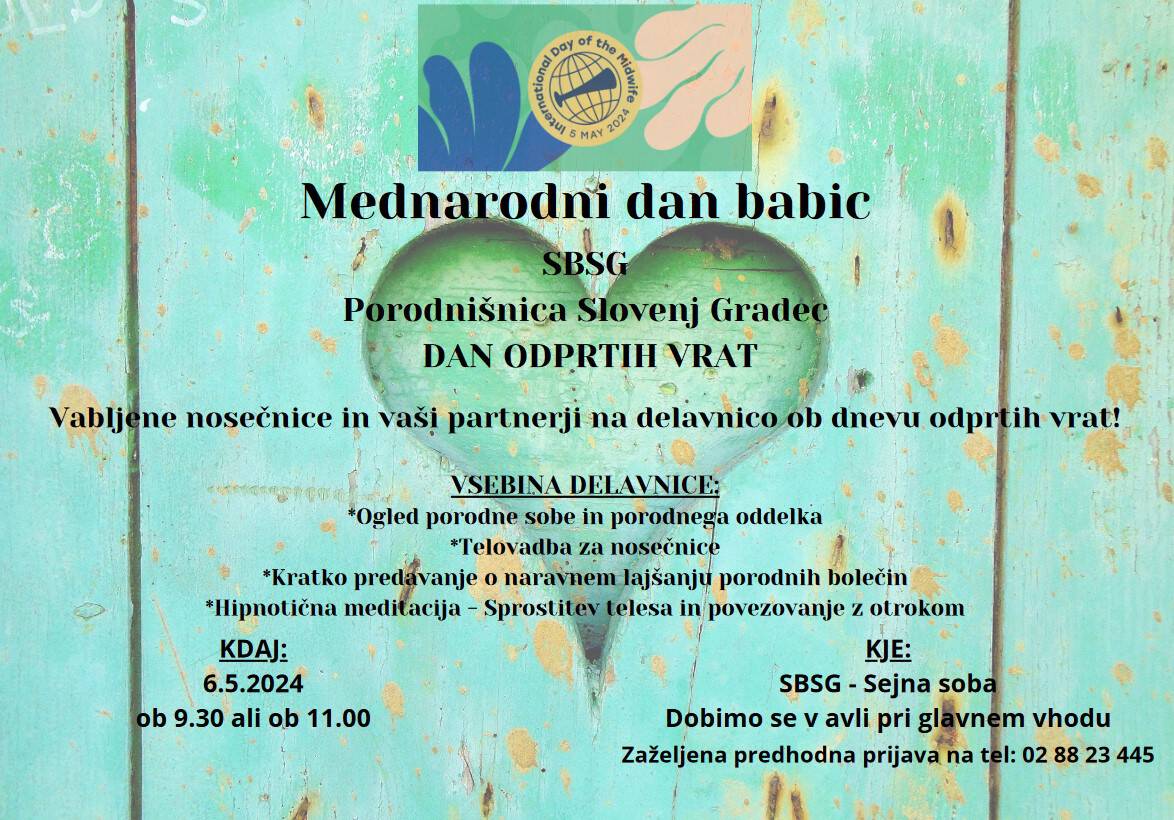 Ob mednarodnem dnevu babic, ki ga obeležujemo vsako leto 5. maja, v Splošni bolnišnici Slovenj Gradec prirejajo Dan odprtih vrat.