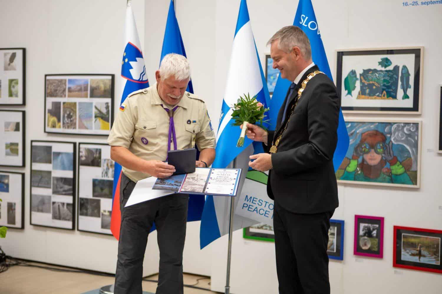 Pri tem naj še omenimo, da Mestna občina Slovenj Gradec občinski praznik 19. septembra praznuje v spomin na dan, ko je bil leta 1989 Slovenj Gradec s posebno listino imenovan za mesto glasnika miru. Listino, s katero se Slovenj Gradec uvršča v eminentno družbo izbranih mest z vseh kontinentov s tem častnim nazivom, je podpisal takratni generalni sekretar Organizacije združenih narodov Perez de Cuellar. Petindvajset let za Slovenj Gradcem je naziv mesto glasnik miru kot drugo slovensko mesto prejela Ljubljana.
