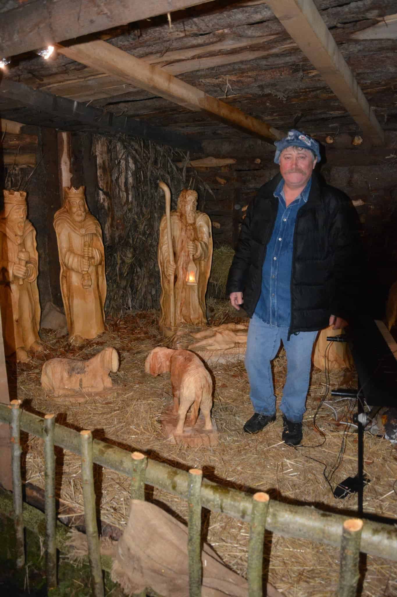 Prevalje v teh dneh krasi prav posebno umetniško delo, jaslice iz lesa v naravni velikosti, nastale izpod rok oz. motorne žage Alojza Grabrovca. Prav ste prebrali, dovršene podobe svete družine je umetnik iz Rogatca ustvaril zgolj z vihtenjem motorne žage. Še večjo edinstvenost umetnini pa daje dejstvo, da Grabrovec za nobeno od skulptur ni imel predhodnih izrisov, meritev ali načrtov. Vse je nastajalo po sprotnem ustvarjalnem navdihu.